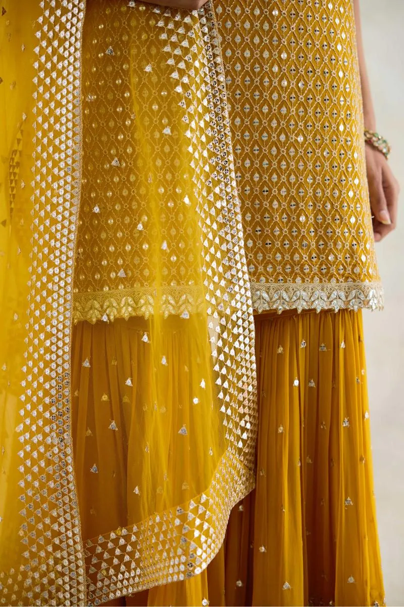 Professional dry-cleaning only. The garment should be kept in Soft Muslin fabric. Do not spray perfume directly on garment. Avoid mothball use. Kindly keep the garment in moderate climate as same of the embroidery material tends to react with the weather change.