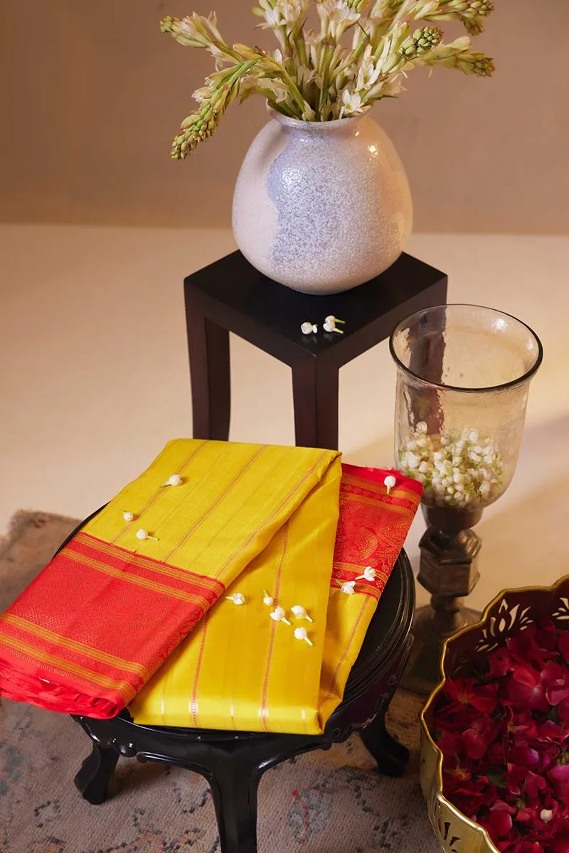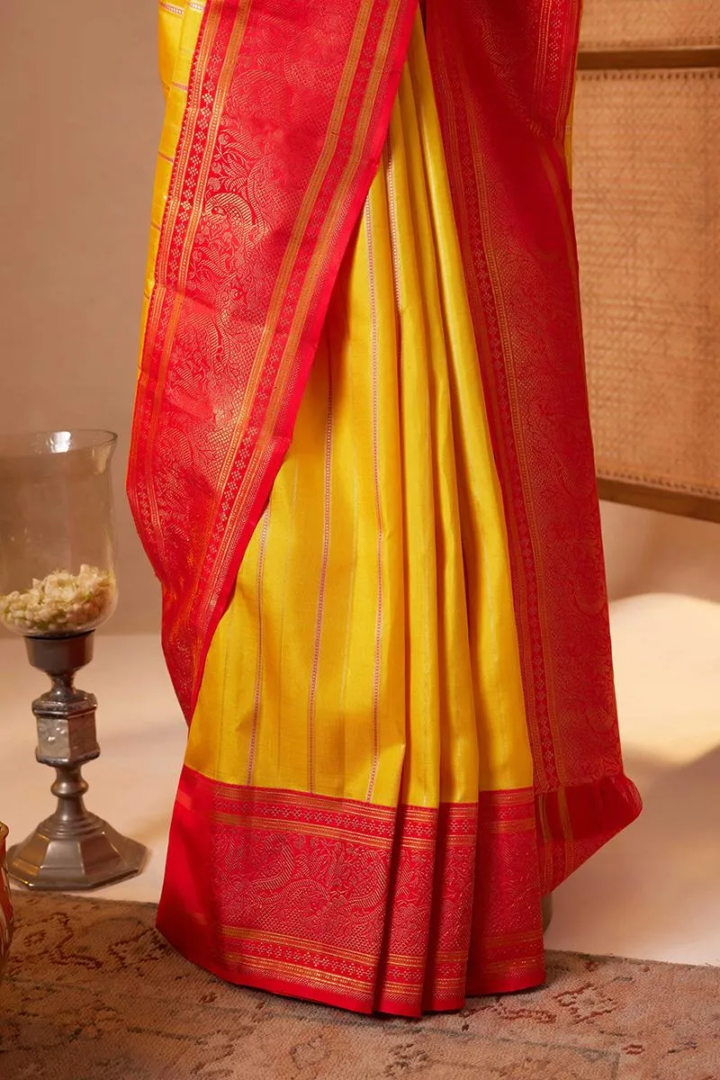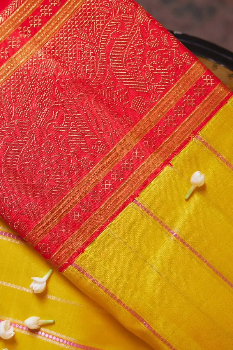 Amber Yellow Kanjivaram Silk Saree