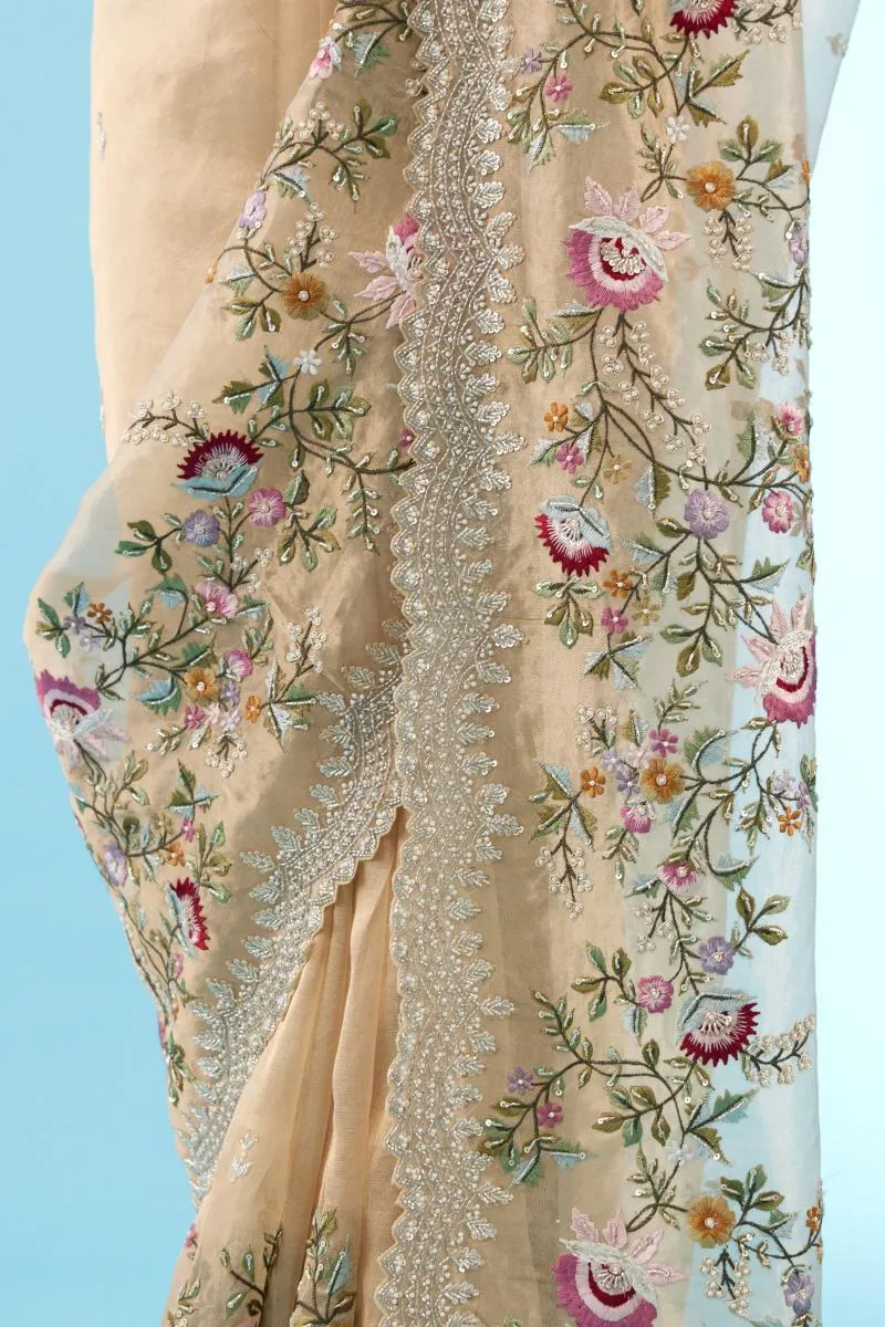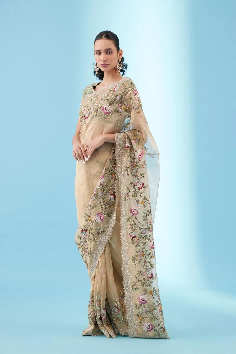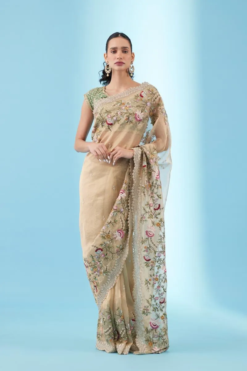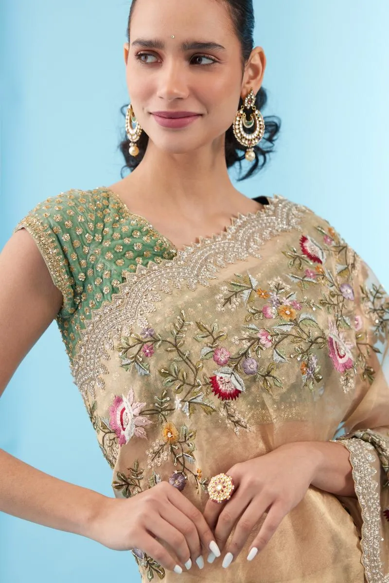 Antique Gold Tissue Organza Saree