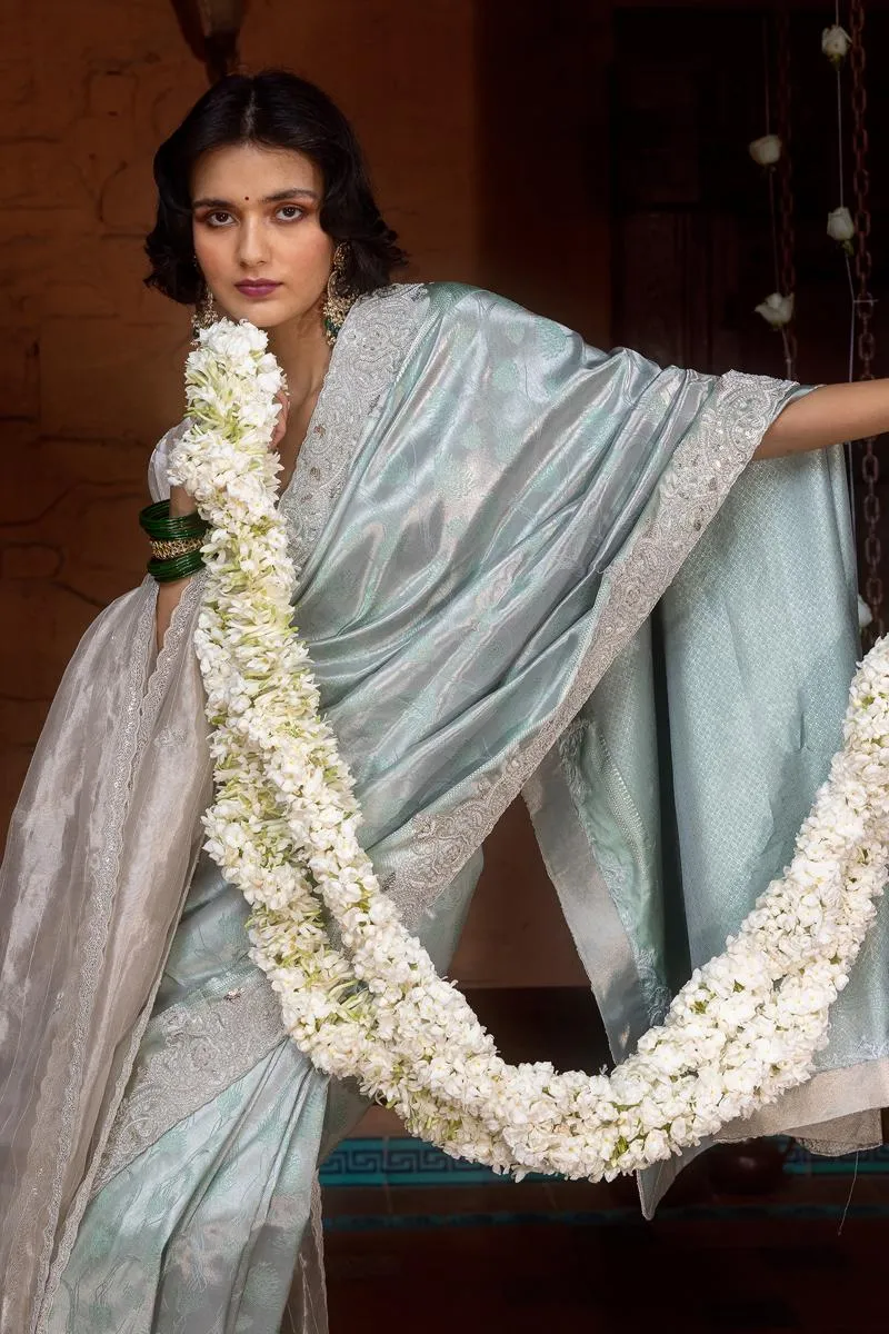 Aqua Blue Kanjivaram Tissue Saree