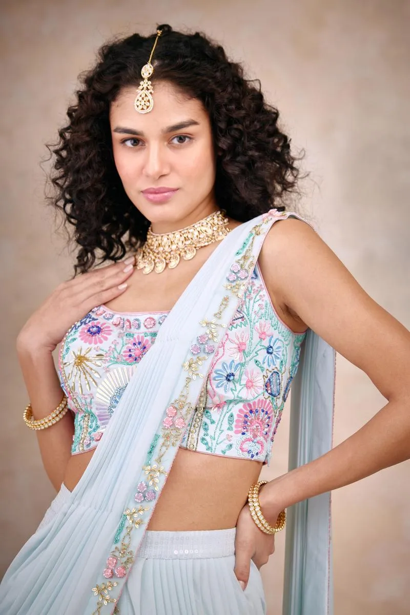 Professional dry cleaning only. The garment should be kept in Soft Muslin fabric. Do not spray perfume directly on garment. Avoid mothball use. Kindly keep the garment in moderate climate as same of the embroidery material tends to react with the weather change.
