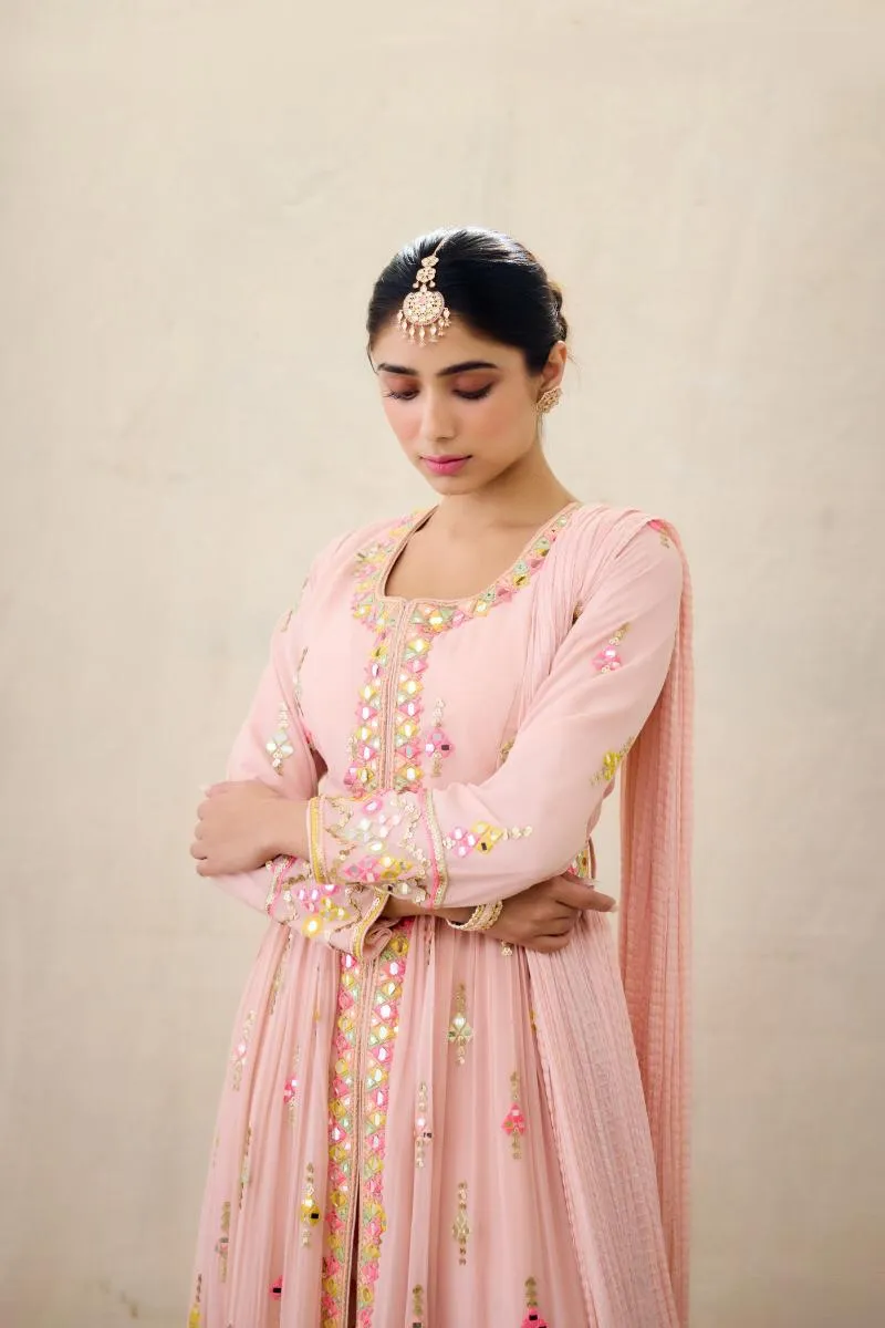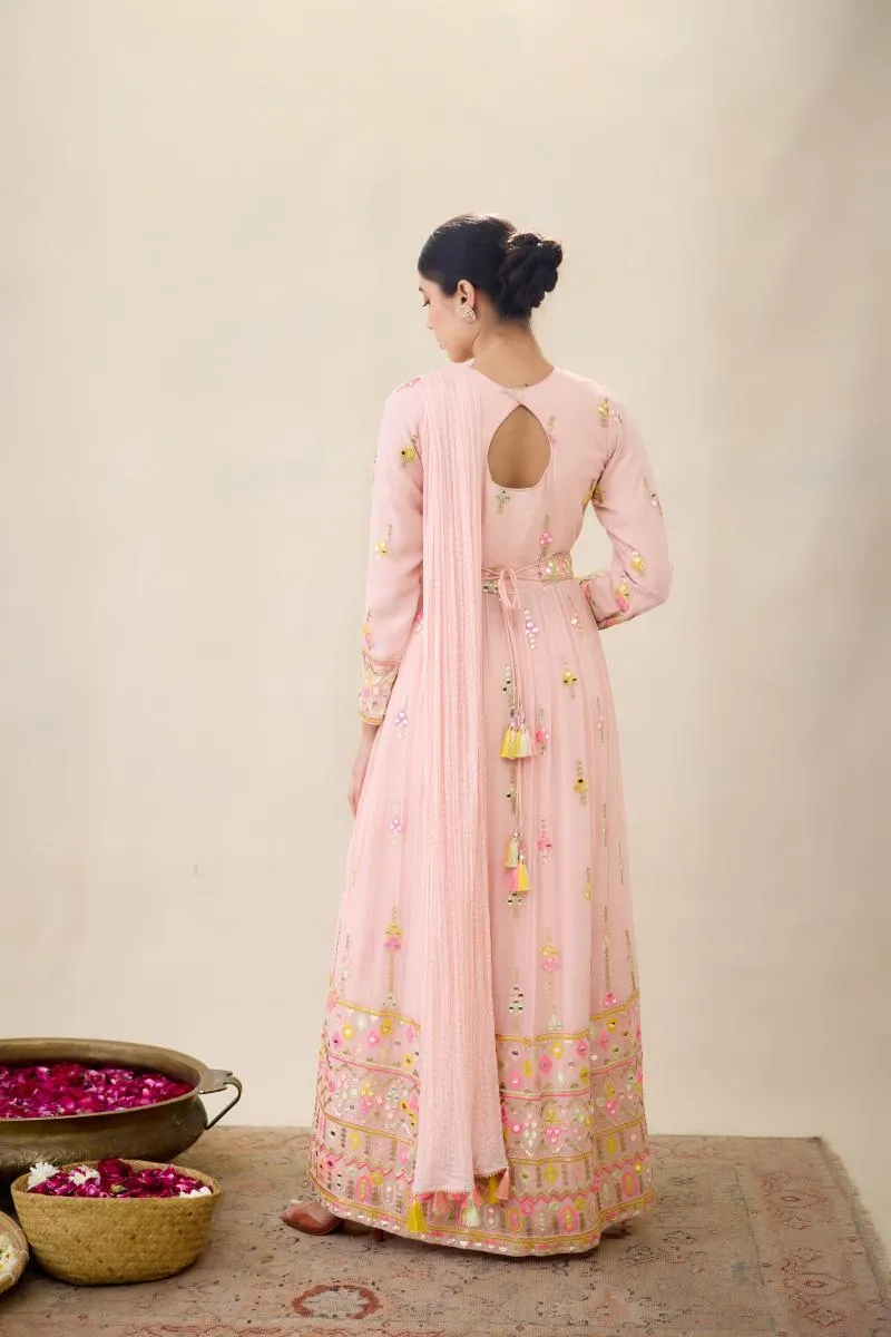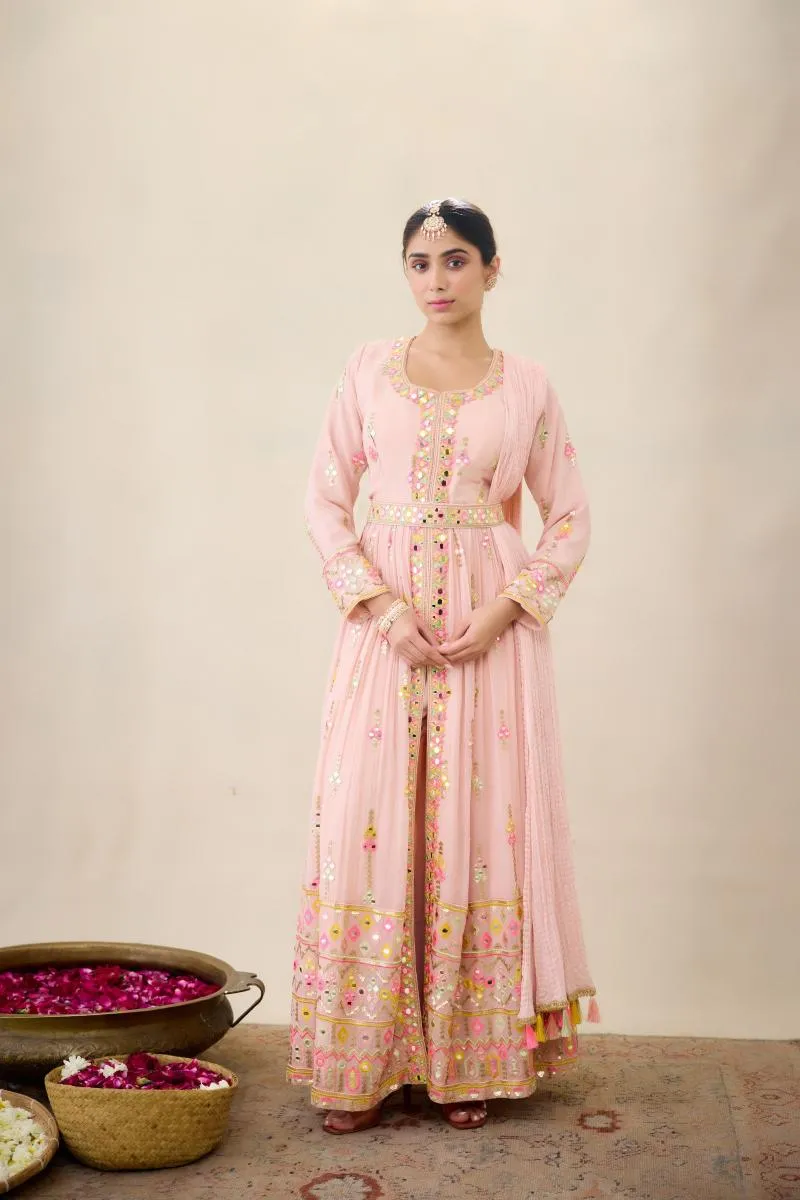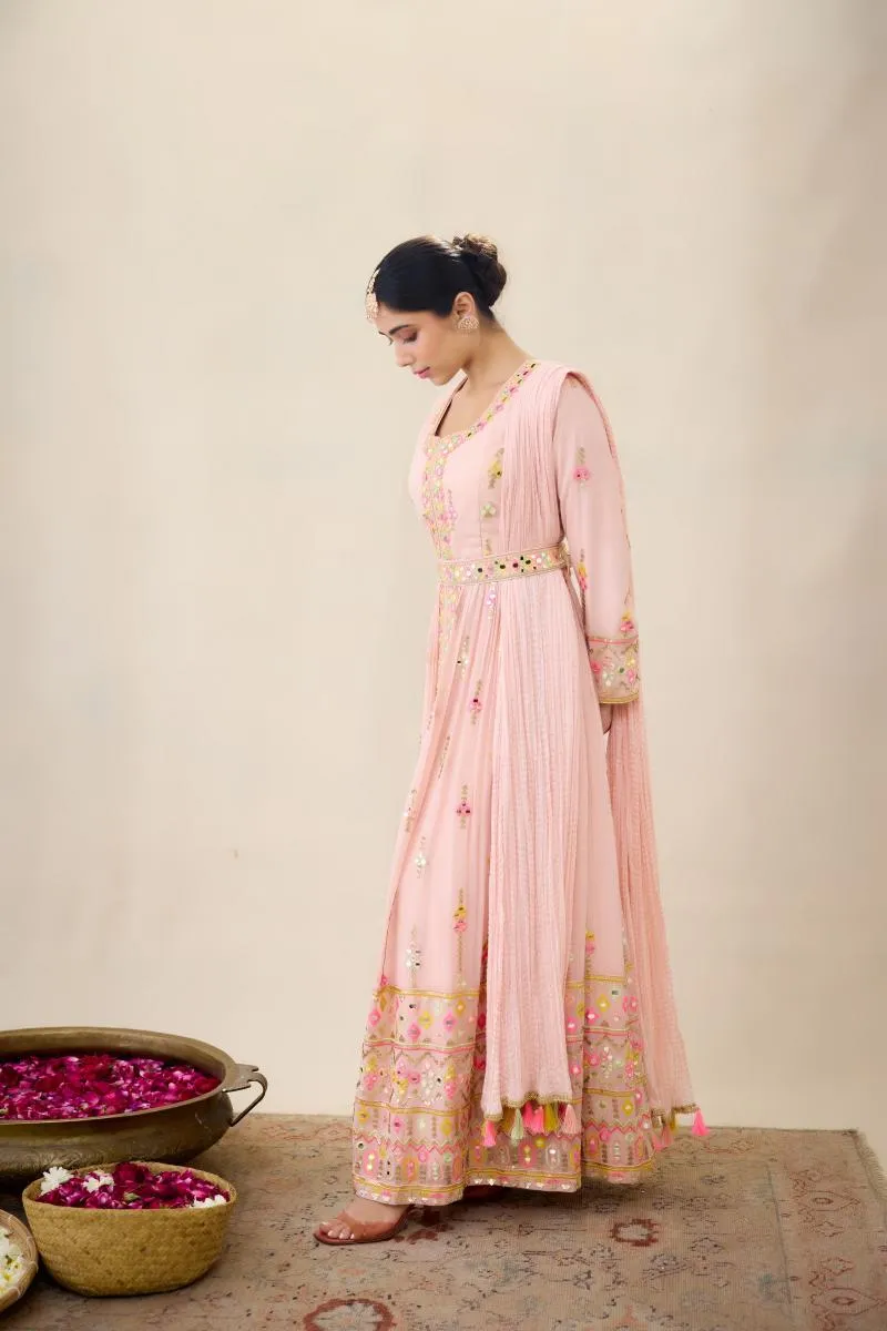 Professional dry-cleaning only. The garment should be kept in Soft Muslin fabric. Do not spray perfume directly on garment. Avoid mothball use. Kindly keep the garment in moderate climate as same of the embroidery material tends to react with the weather change.