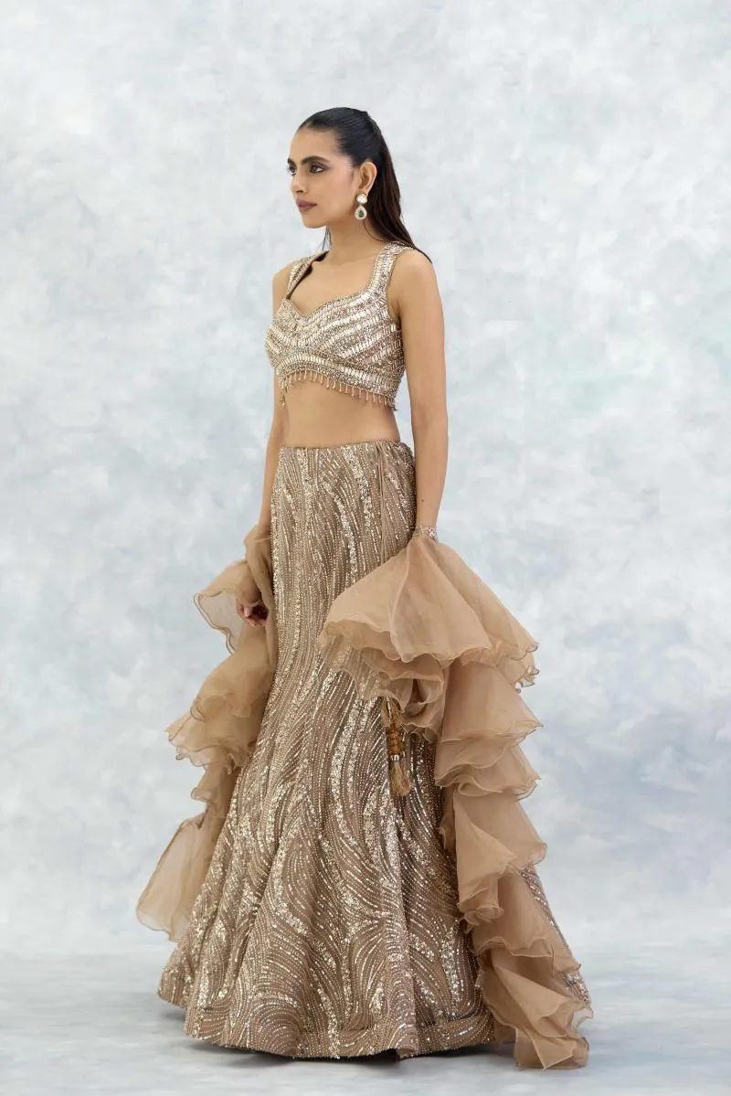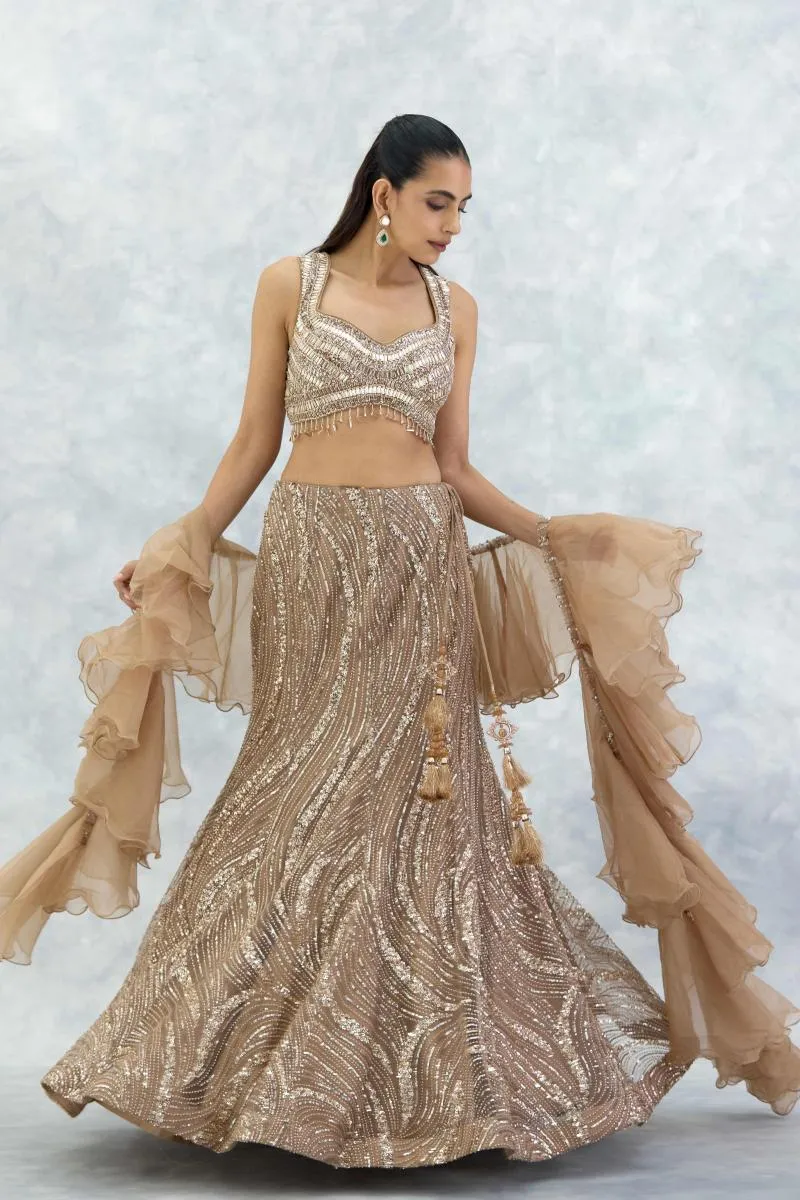 Professional dry-cleaning only. The garment should be kept in Soft Muslin fabric. Do not spray perfume directly on garment. Avoid mothball use. Kindly keep the garment in moderate climate as same of the embroidery material tends to react with the weather change.