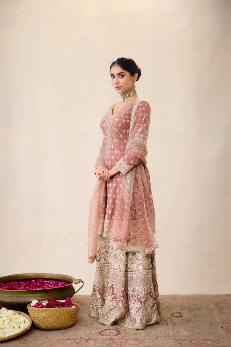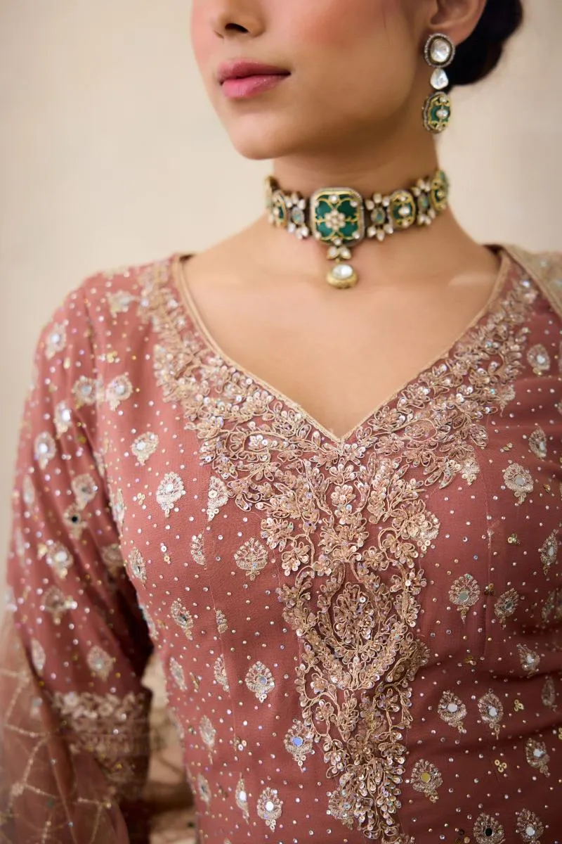 Professional dry-cleaning only. The garment should be kept in Soft Muslin fabric. Do not spray perfume directly on garment. Avoid mothball use. Kindly keep the garment in moderate climate as same of the embroidery material tends to react with the weather change.