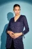 Bedazzle in our blazing red co ord set. Made from crepe, and accentuated in jazzy details of drop crystals and a jaal of cutdana, our front open jacket comes paired with a well tailored pair of Jodhpur inspired pants and sleeveless crop top. Style yours with a pair of pumps and statement jewels.