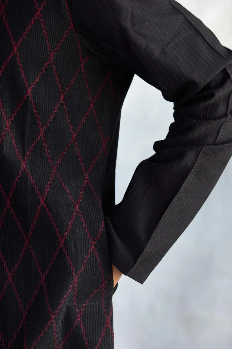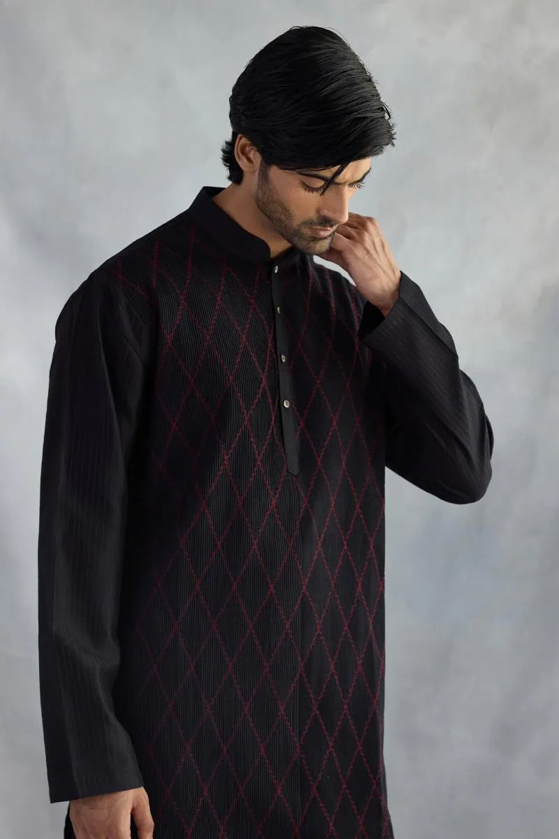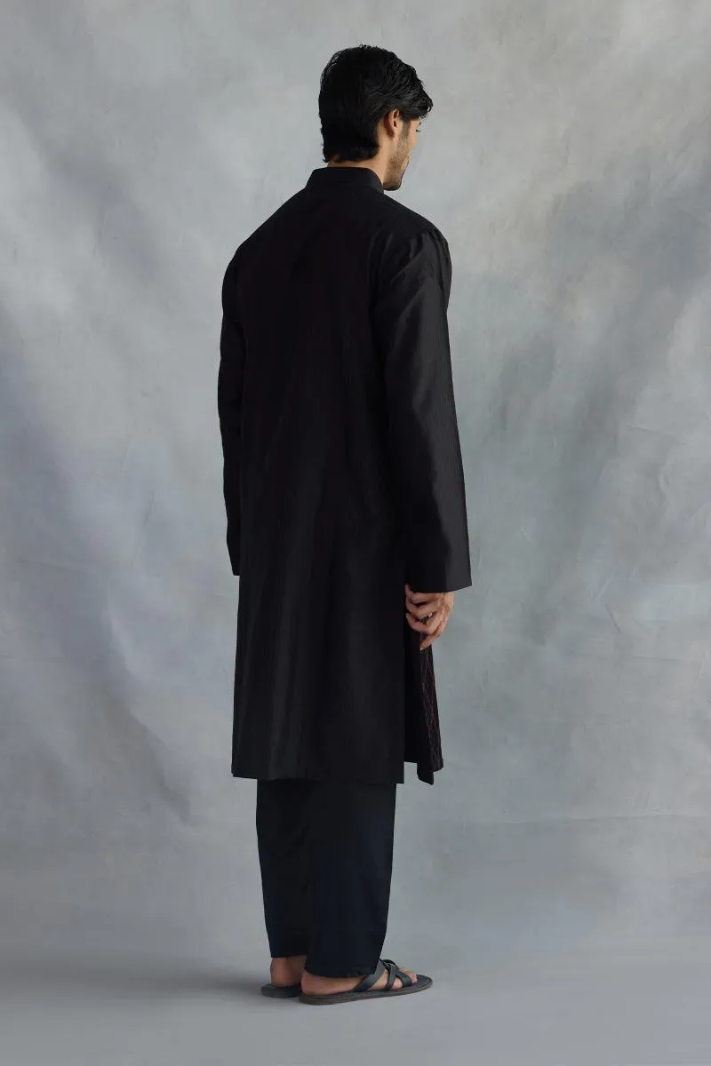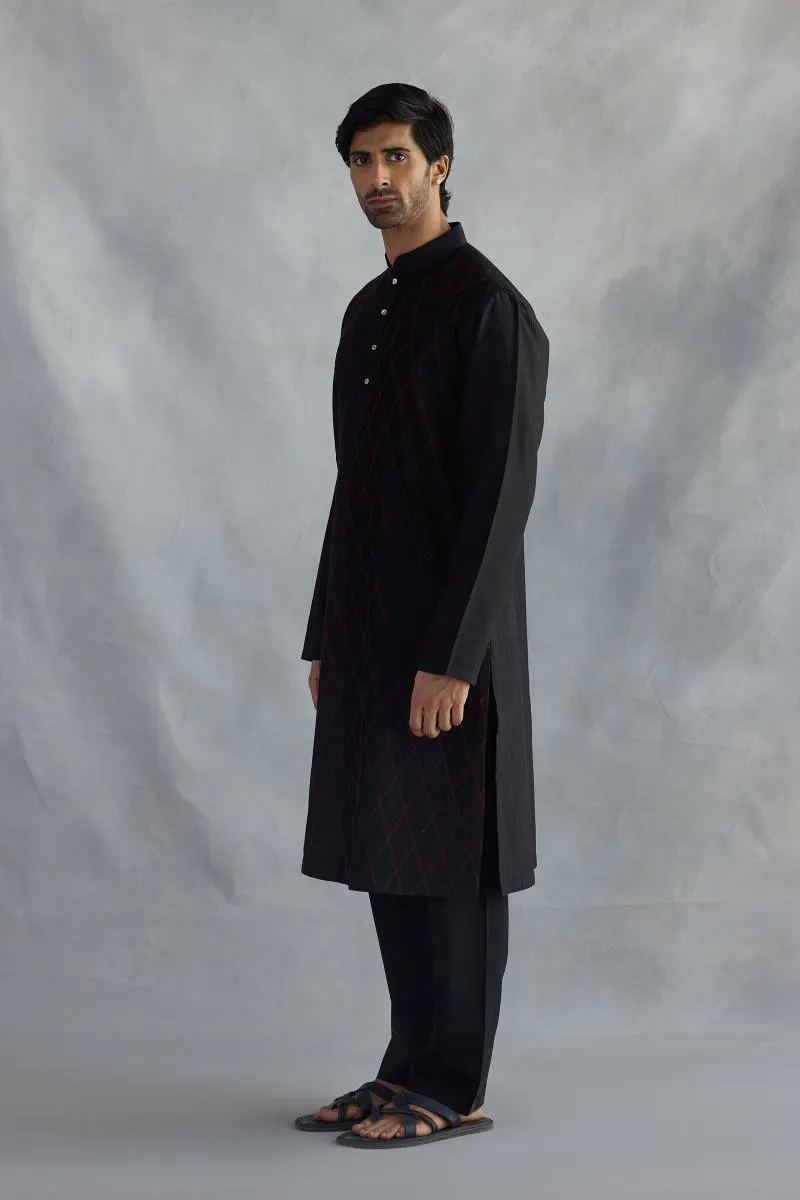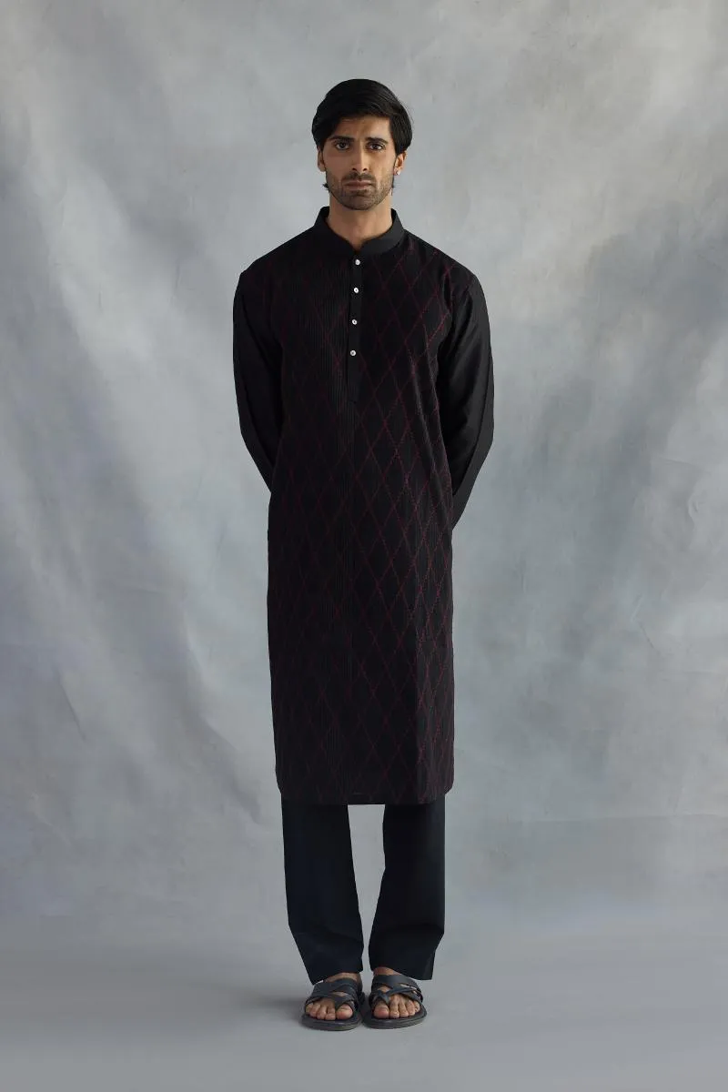 Black & Red Cotton Kurta Set