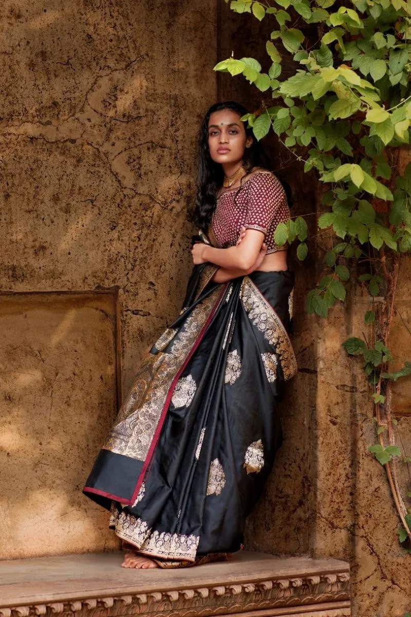 Black Banarasi Satin Saree