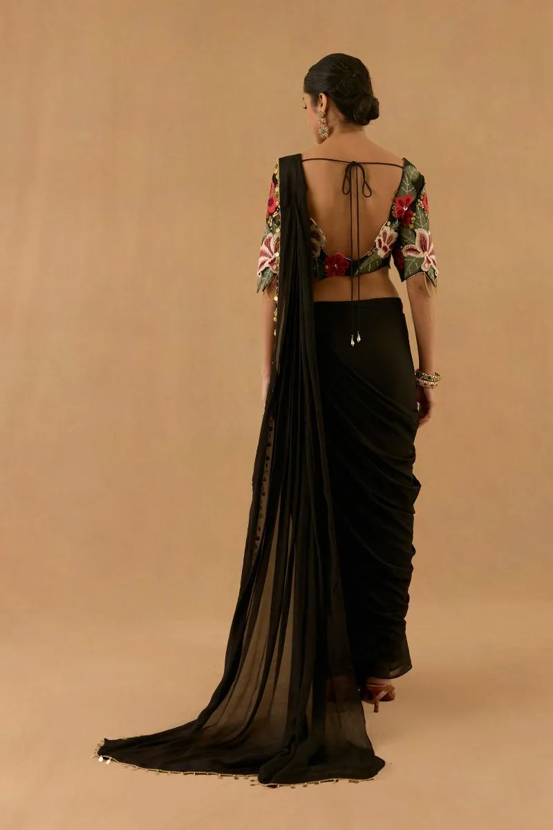 Professional dry-cleaning only. The garment should be kept in Soft Muslin fabric. Do not spray perfume directly on garment. Avoid mothball use. Kindly keep the garment in moderate climate as same of the embroidery material tends to react with the weather change.