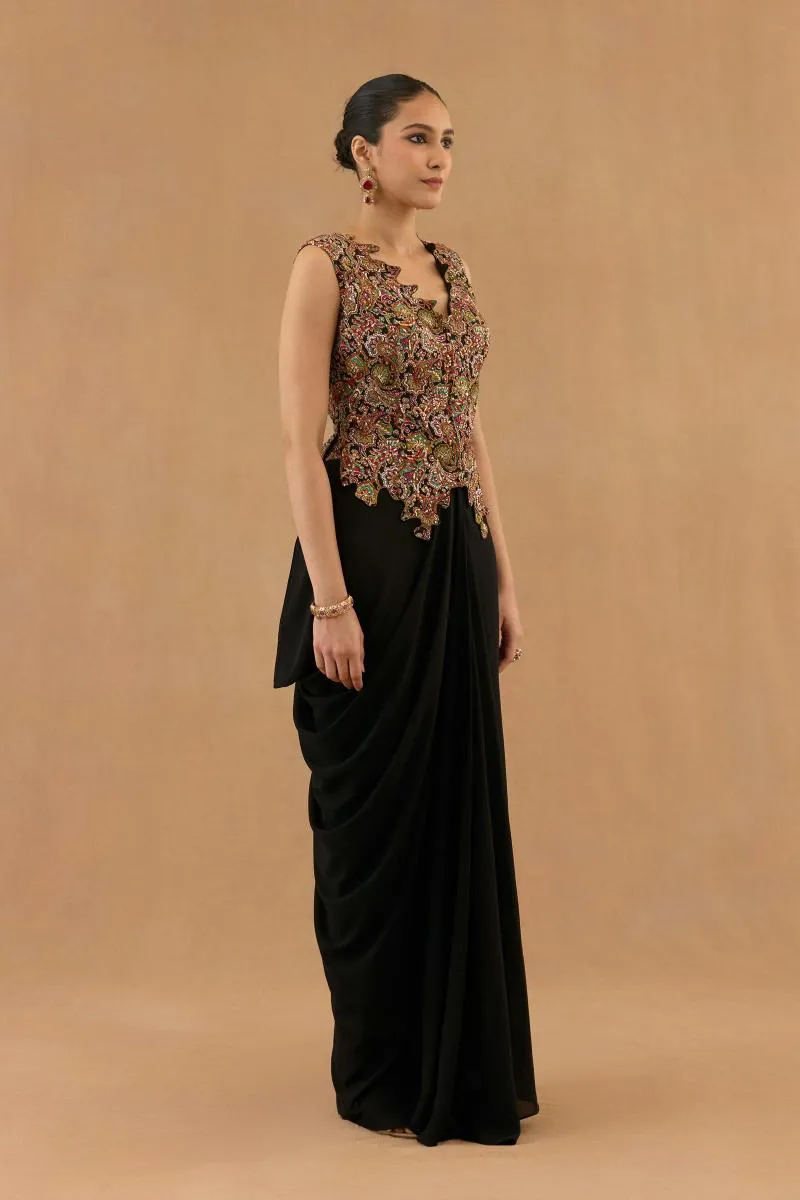 Black Georgette Drape Saree