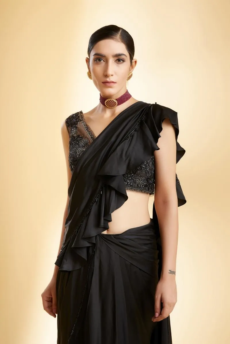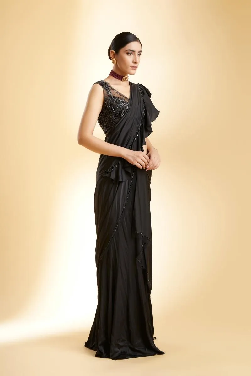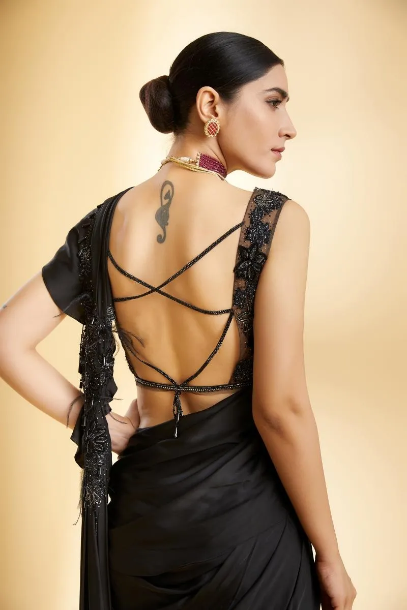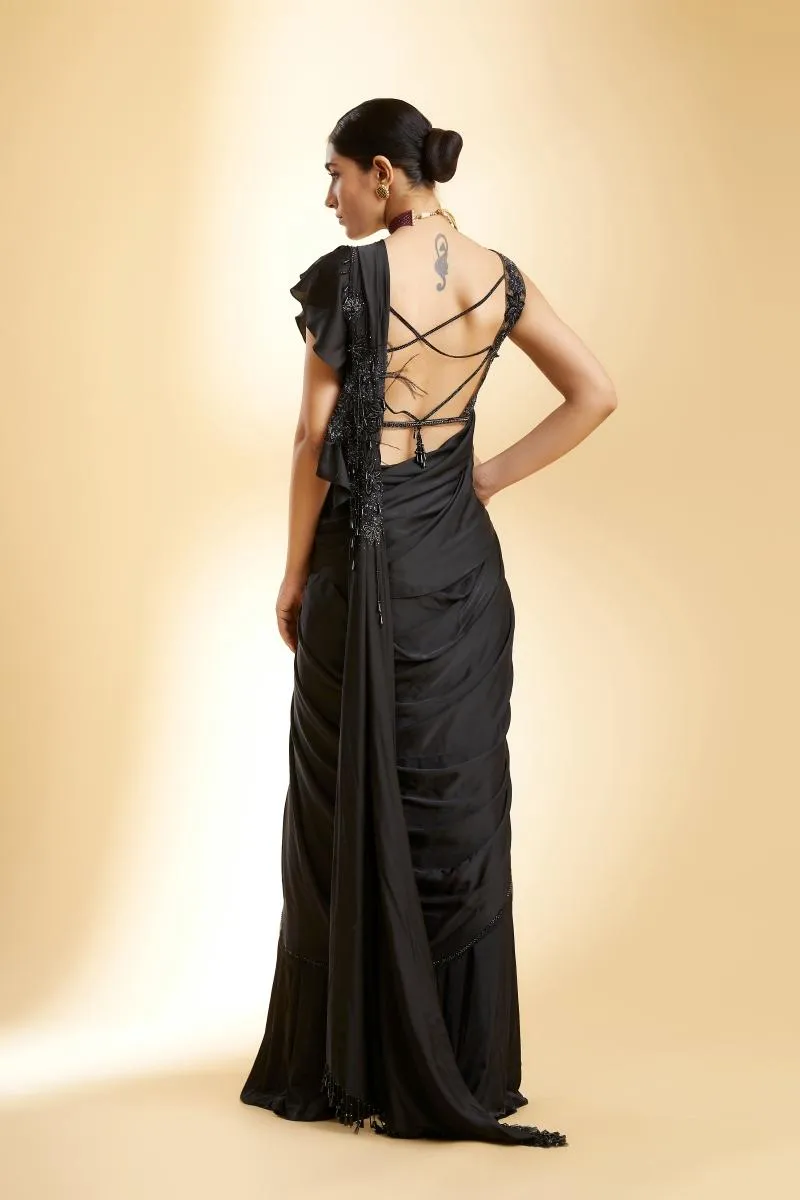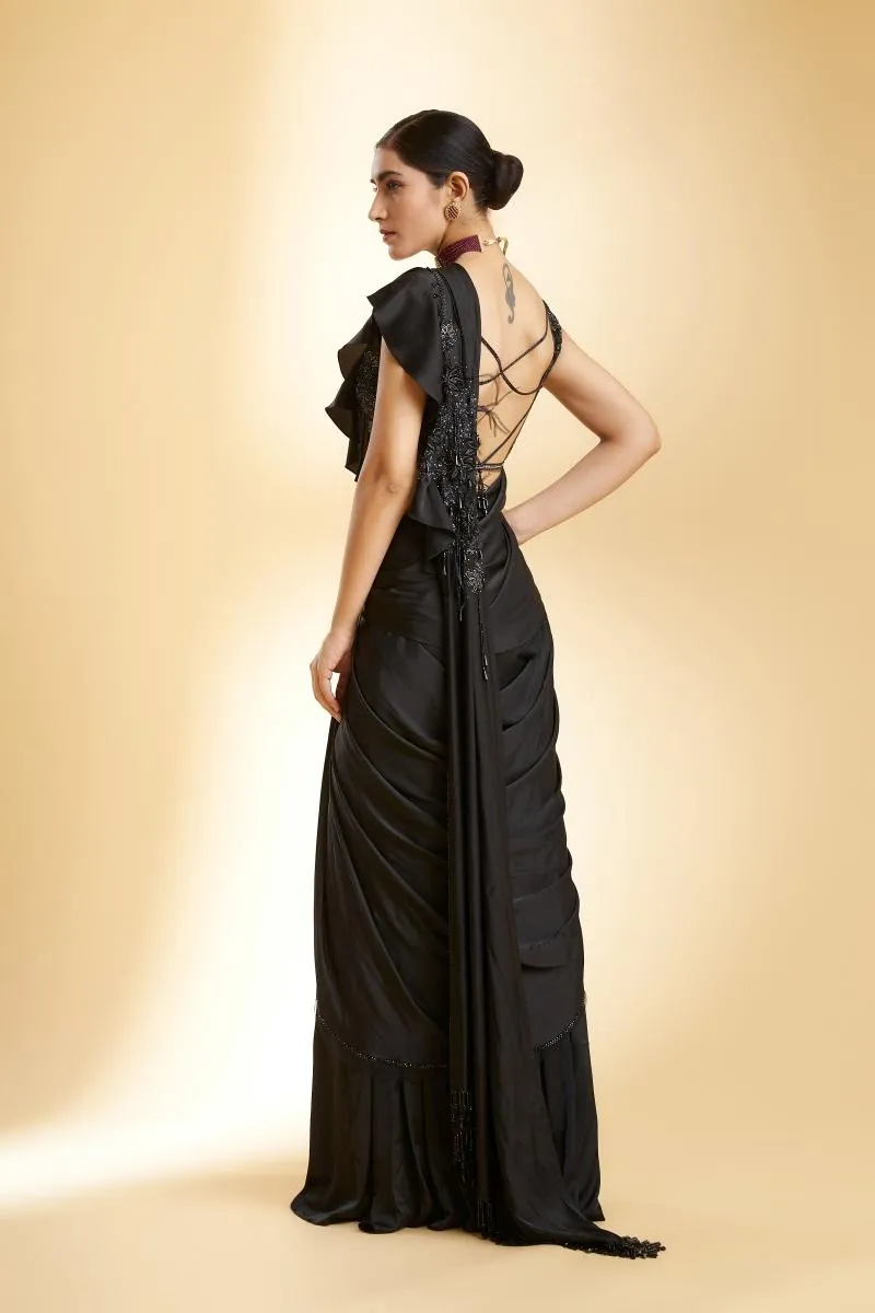 Black Satin Drape Saree