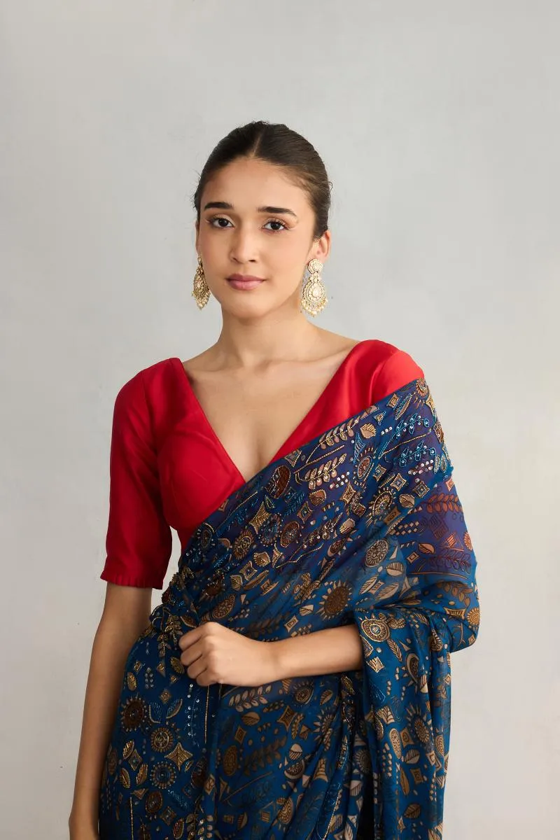 Professional dry-cleaning only. The garment should be kept in Soft Muslin fabric. Do not spray perfume directly on garment. Avoid mothball use. Kindly keep the garment in moderate climate as same of the embroidery material tends to react with the weather change.