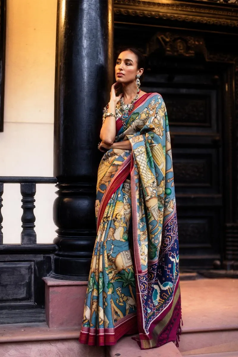 Blue Patola Silk Saree