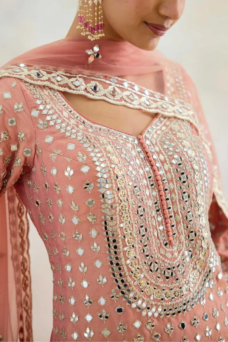 Professional dry-cleaning only. The garment should be kept in Soft Muslin fabric. Do not spray perfume directly on garment. Avoid mothball use. Kindly keep the garment in moderate climate as same of the embroidery material tends to react with the weather change.