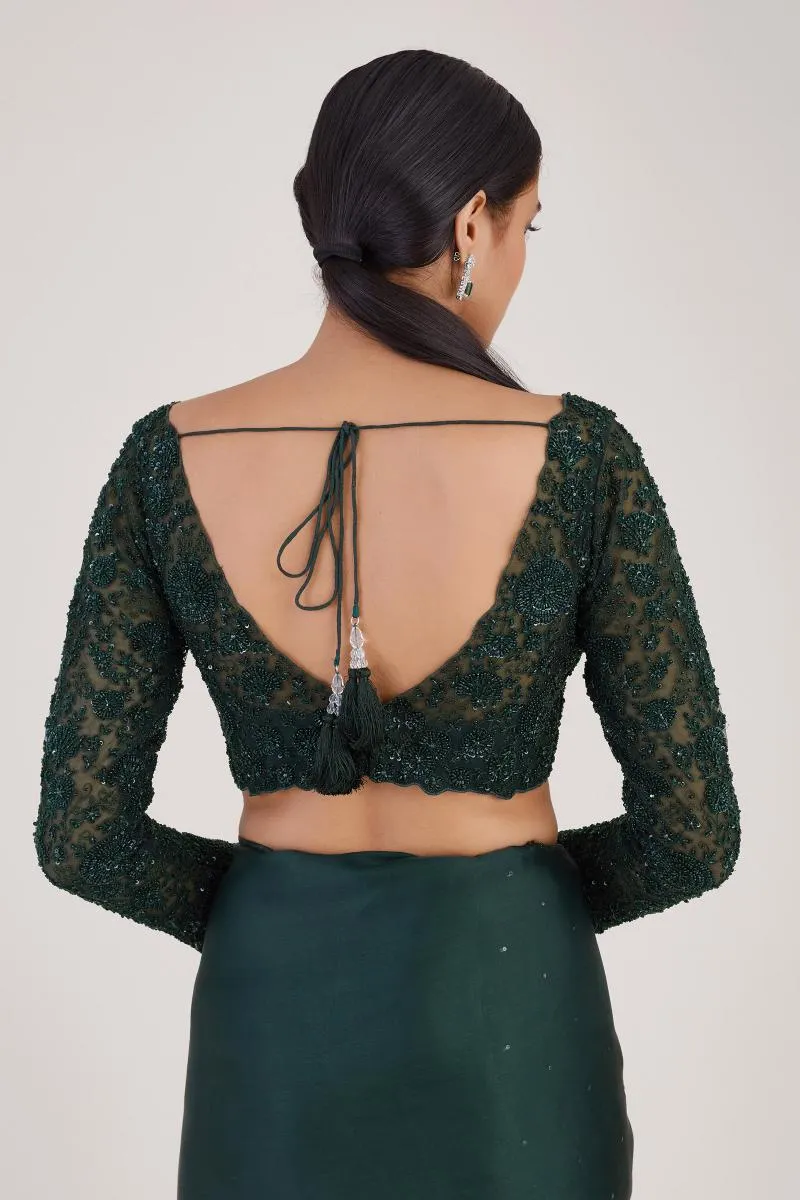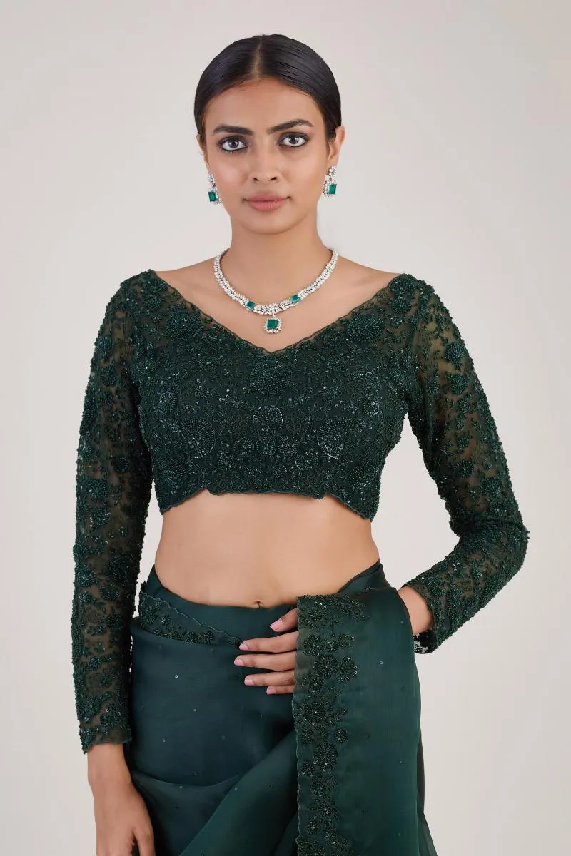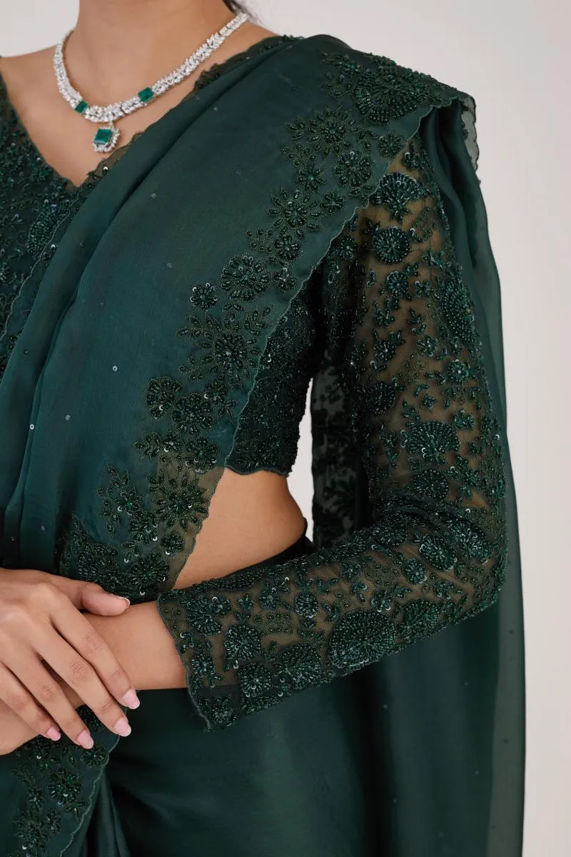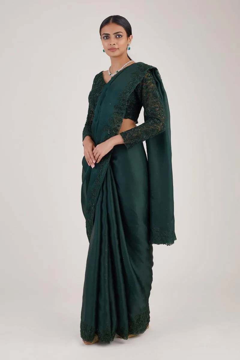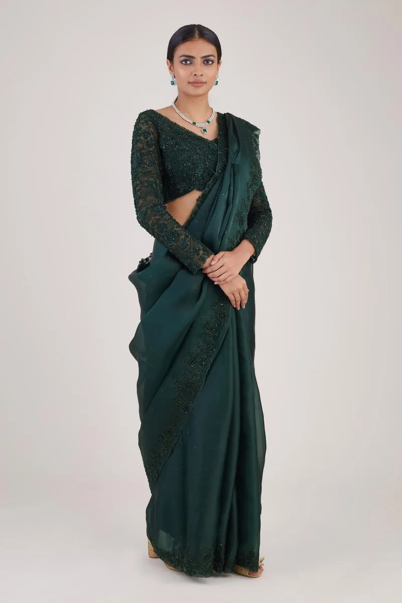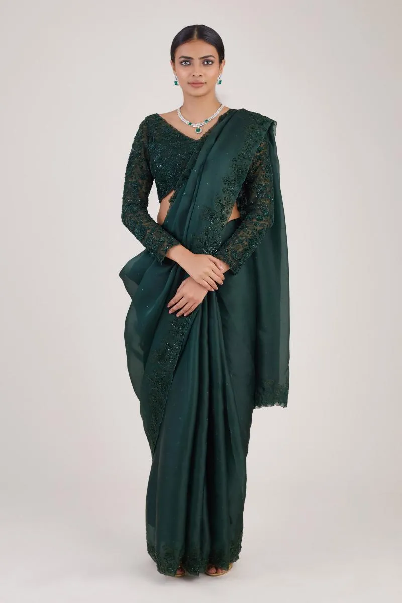Bottle Green Sequin Satin Organza Saree