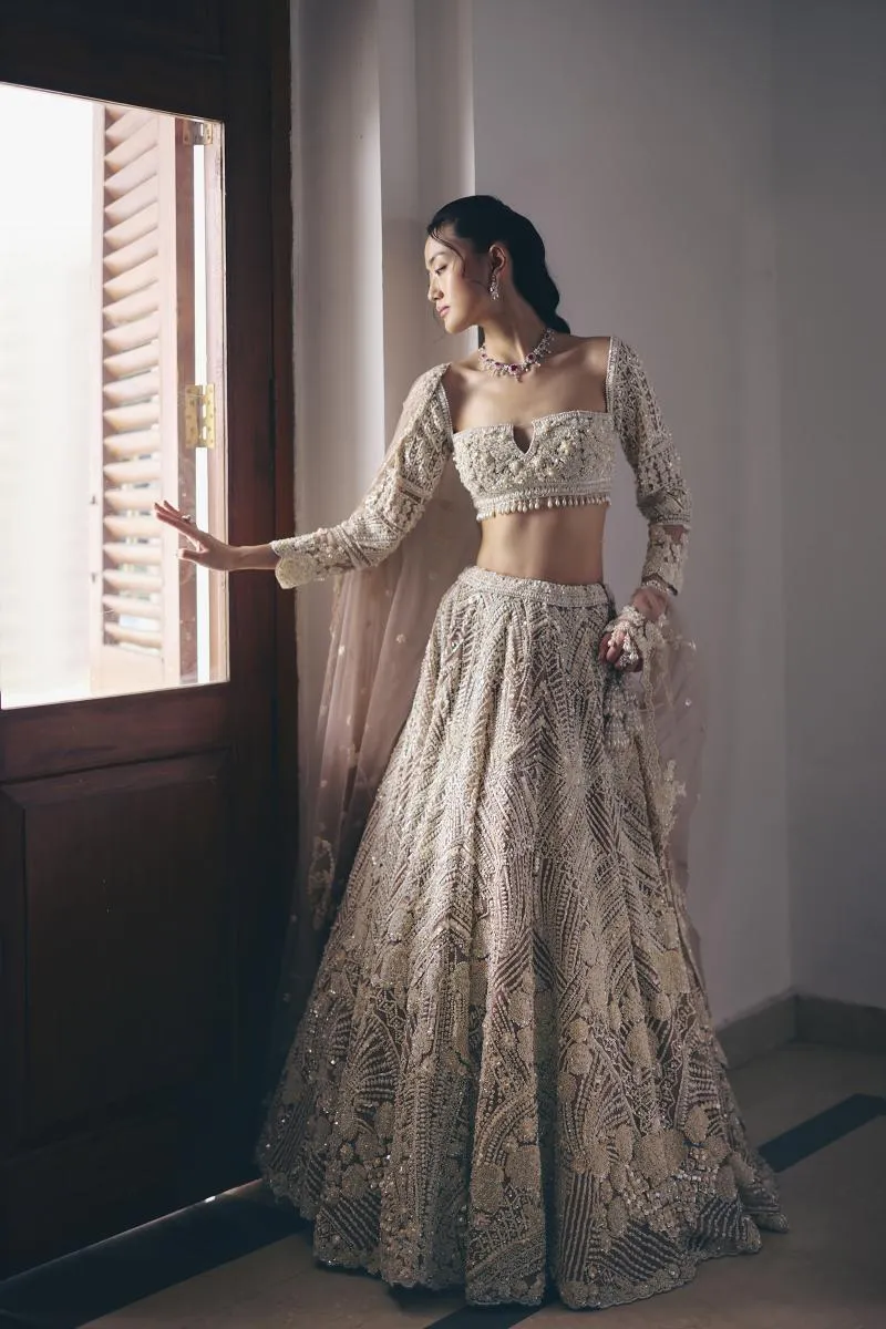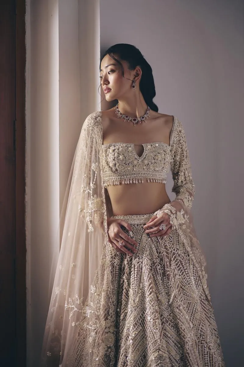 Professional dry-cleaning only. The garment should be kept in Soft Muslin fabric. Do not spray perfume directly on garment. Avoid mothball use. Kindly keep the garment in moderate climate as same of the embroidery material tends to react with the weather change.