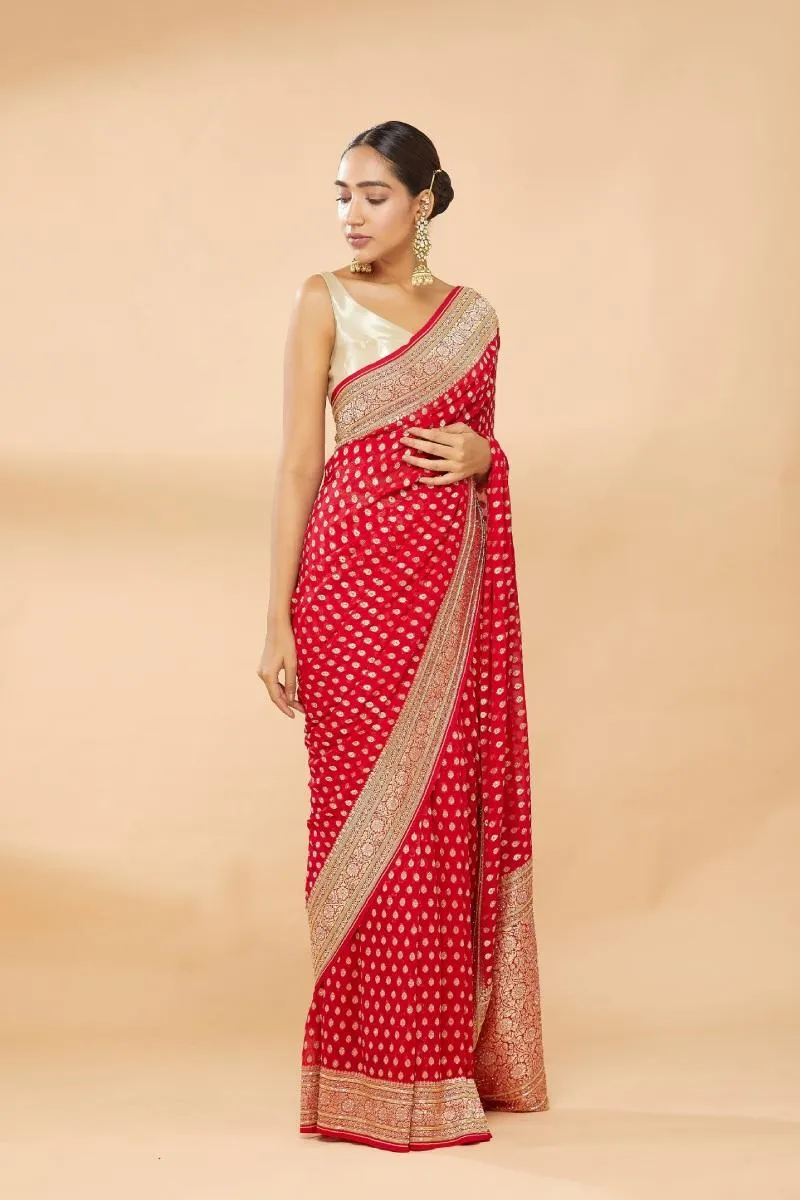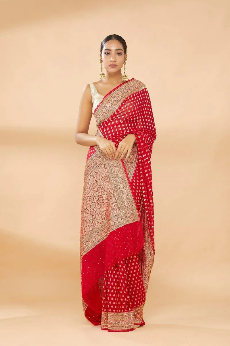 Candy Red Embroidered Saree