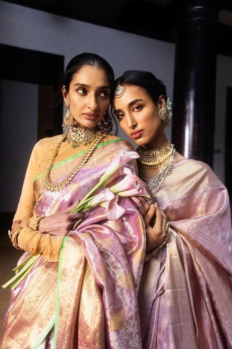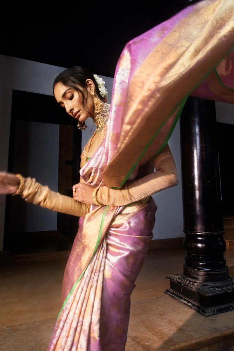 Carnation Pink Kanjivaram Silk Saree