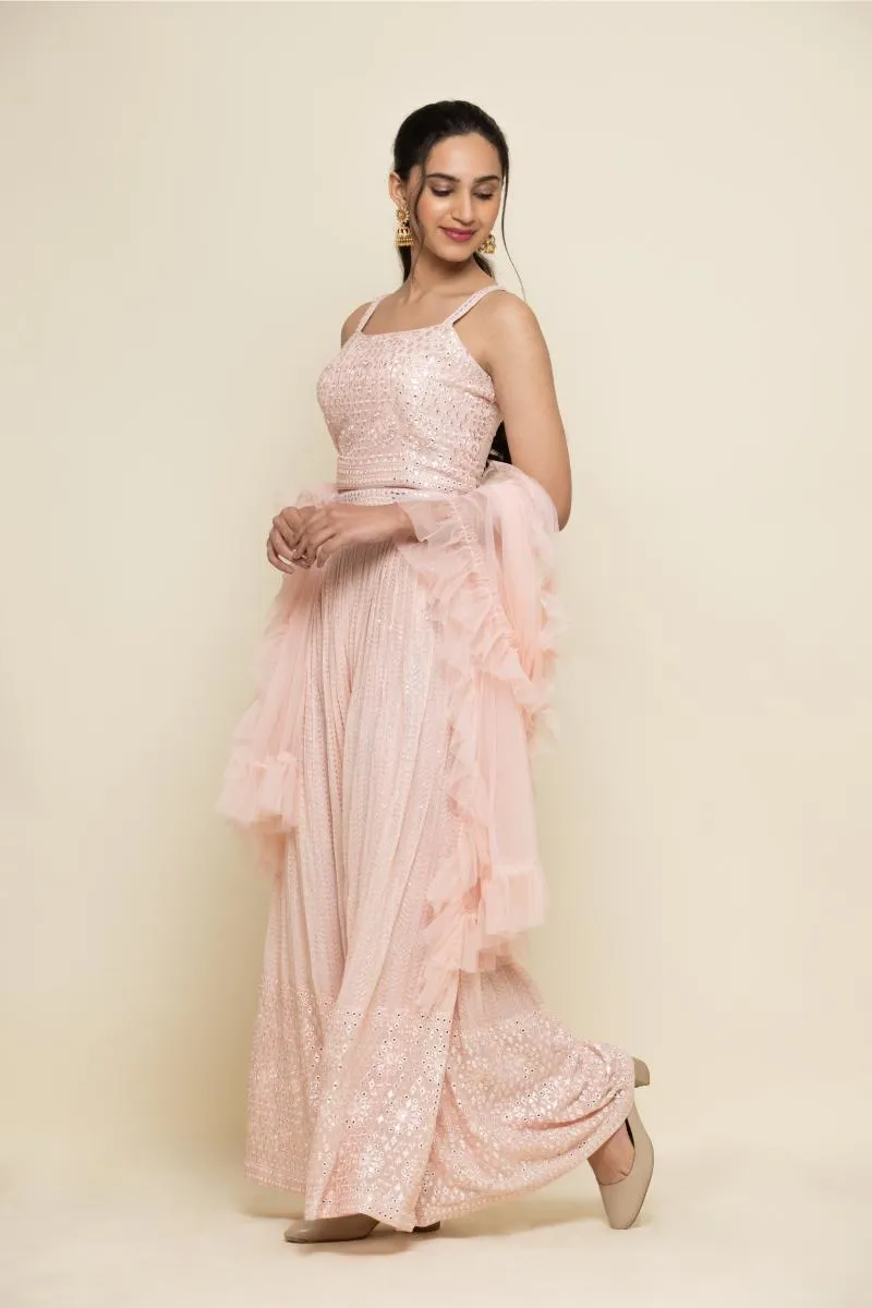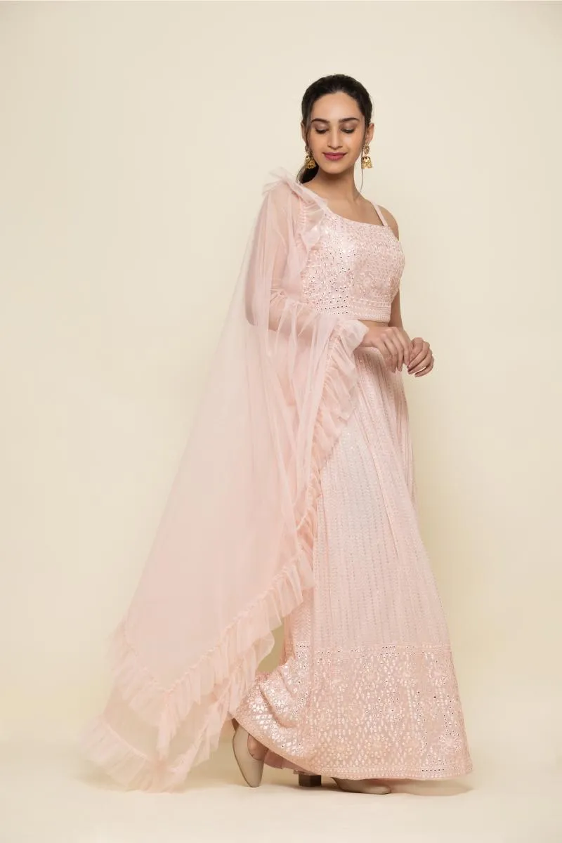 Professional dry-cleaning only. The garment should be kept in Soft Muslin fabric. Do not spray perfume directly on garment. Avoid mothball use. Kindly keep the garment in moderate climate as same of the embroidery material tends to react with the weather change.