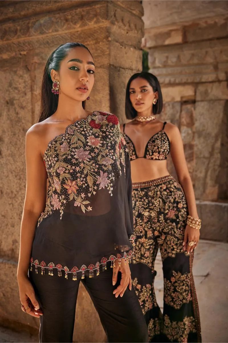 Professional dry-cleaning only. The garment should be kept in Soft Muslin fabric. Do not spray perfume directly on garment. Avoid mothball use. Kindly keep the garment in moderate climate as same of the embroidery material tends to react with the weather change.