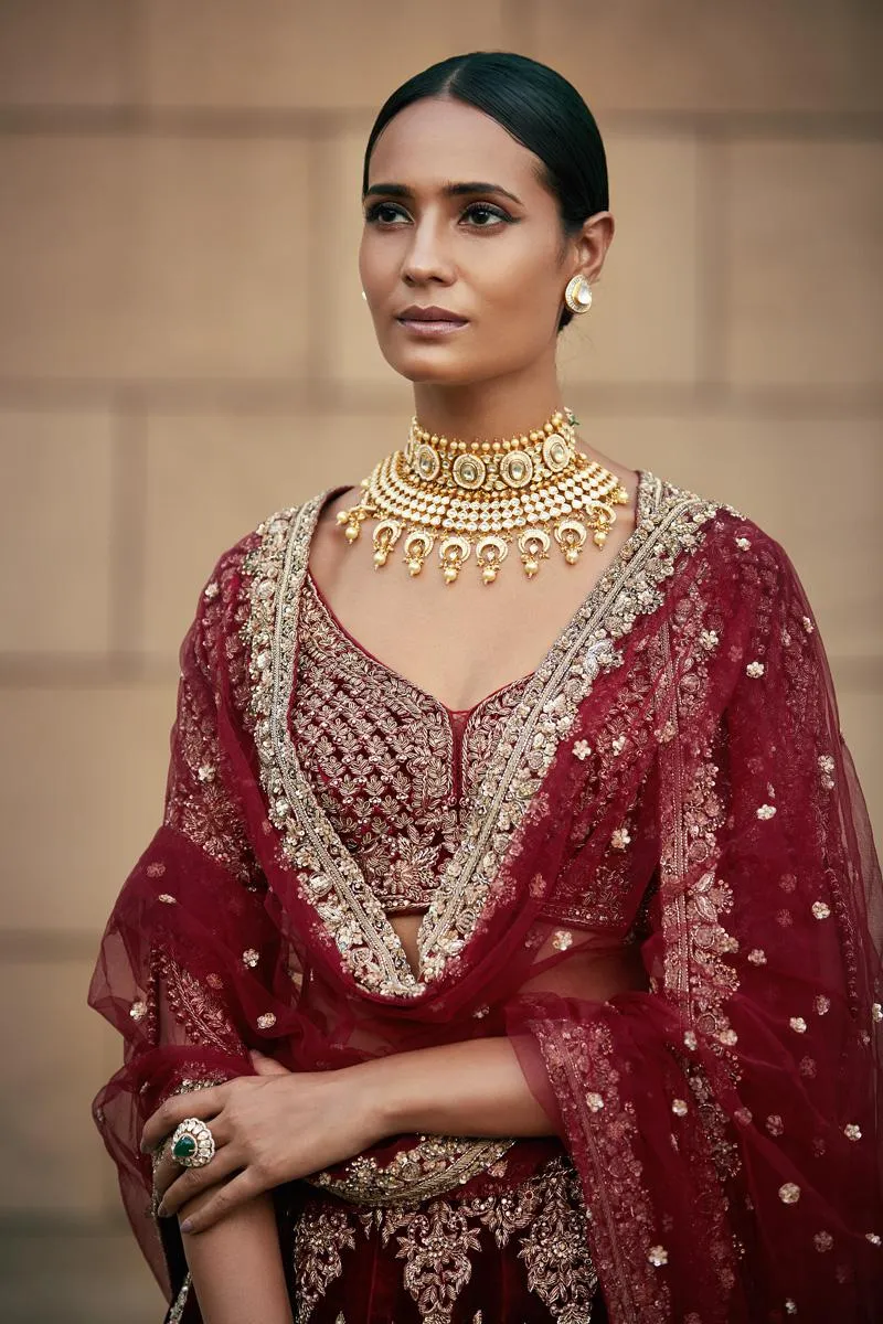 Professional dry-cleaning only. The garment should be kept in Soft Muslin fabric. Do not spray perfume directly on garment. Avoid mothball use. Kindly keep the garment in moderate climate as same of the embroidery material tends to react with the weather change.