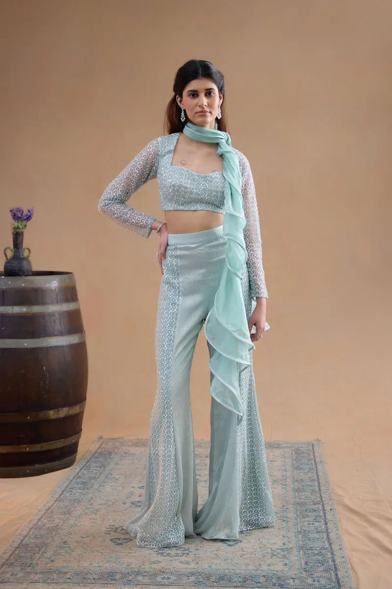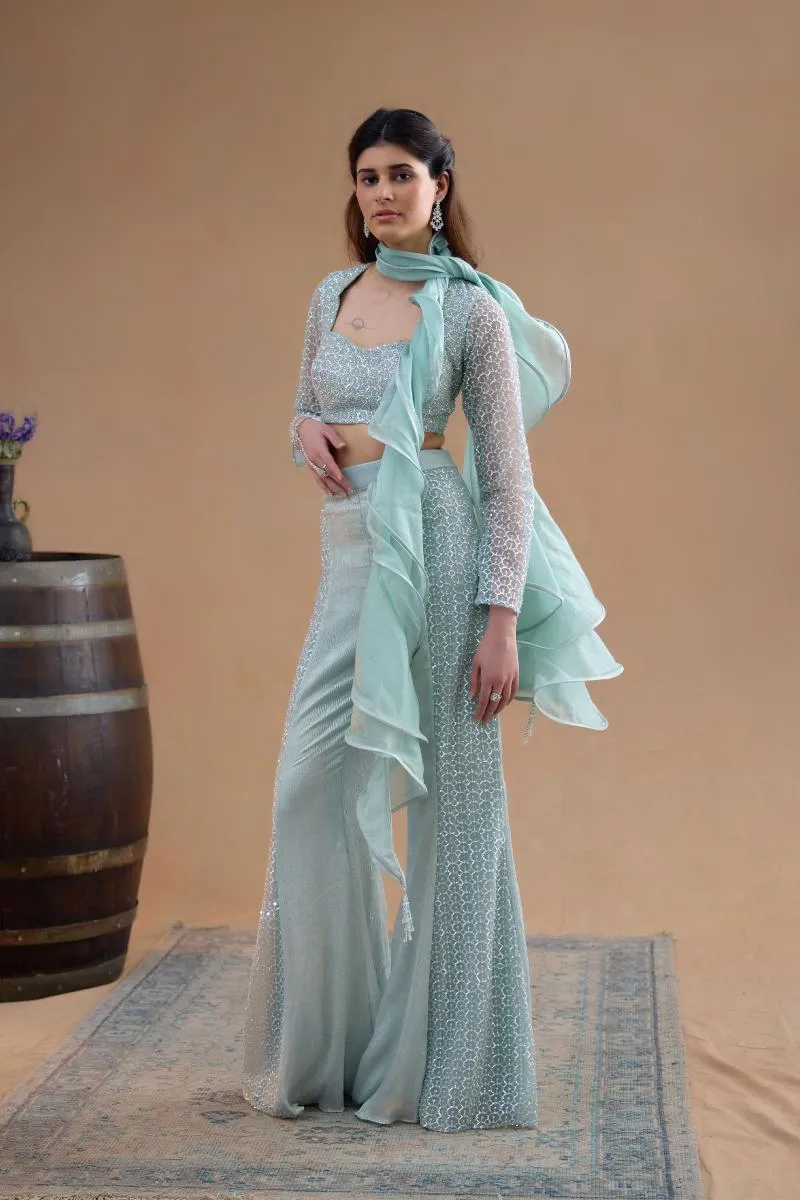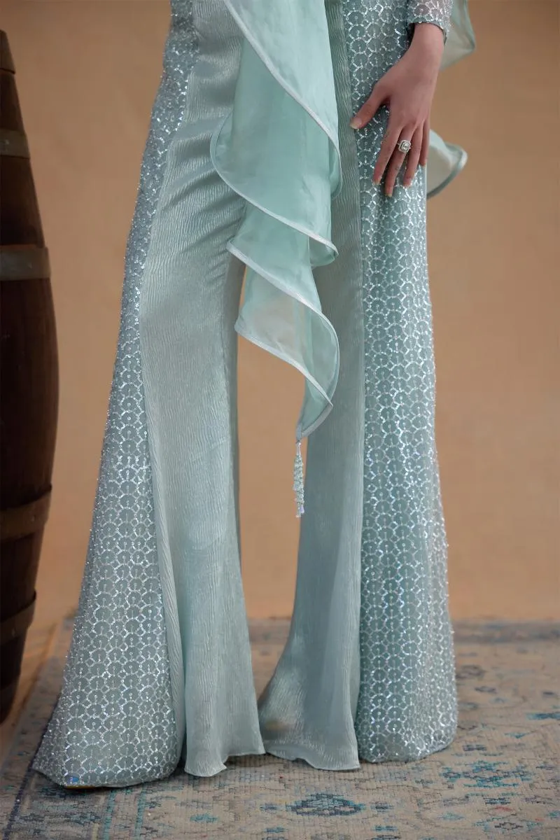 Professional dry-cleaning only. The garment should be kept in Soft Muslin fabric. Do not spray perfume directly on garment. Avoid mothball use. Kindly keep the garment in moderate climate as same of the embroidery material tends to react with the weather change.