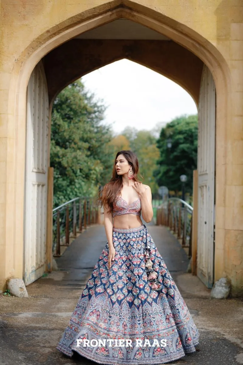Cobalt Blue Organza Lehenga