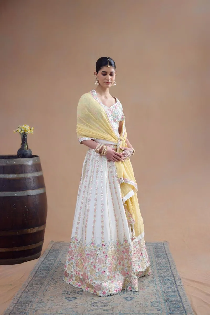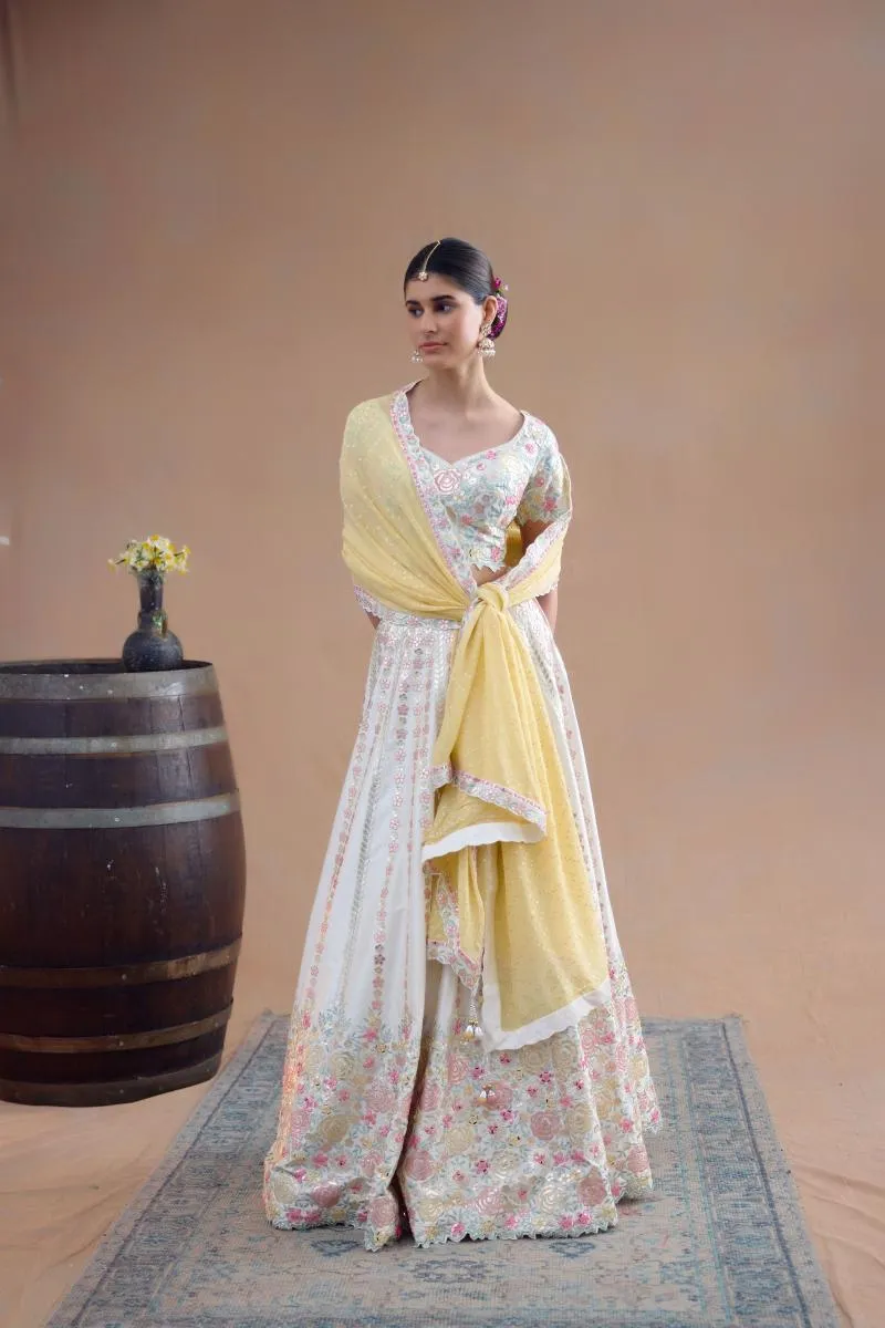 Professional dry-cleaning only. The garment should be kept in Soft Muslin fabric. Do not spray perfume directly on garment. Avoid mothball use. Kindly keep the garment in moderate climate as same of the embroidery material tends to react with the weather change.