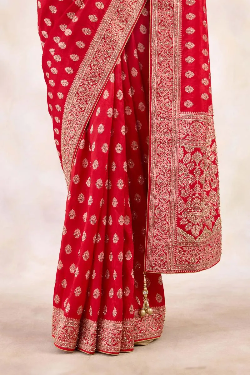 Professional dry-cleaning only. The garment should be kept in Soft Muslin fabric. Do not spray perfume directly on garment. Avoid mothball use. Kindly keep the garment in moderate climate as same of the embroidery material tends to react with the weather change.