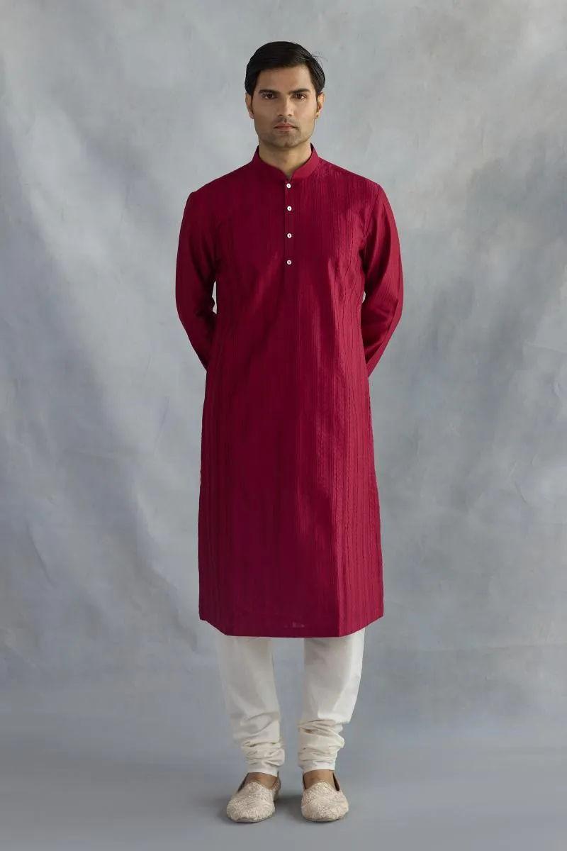 Crimson Red Cotton Kurta Set