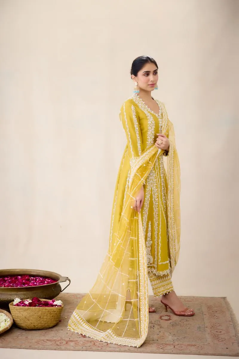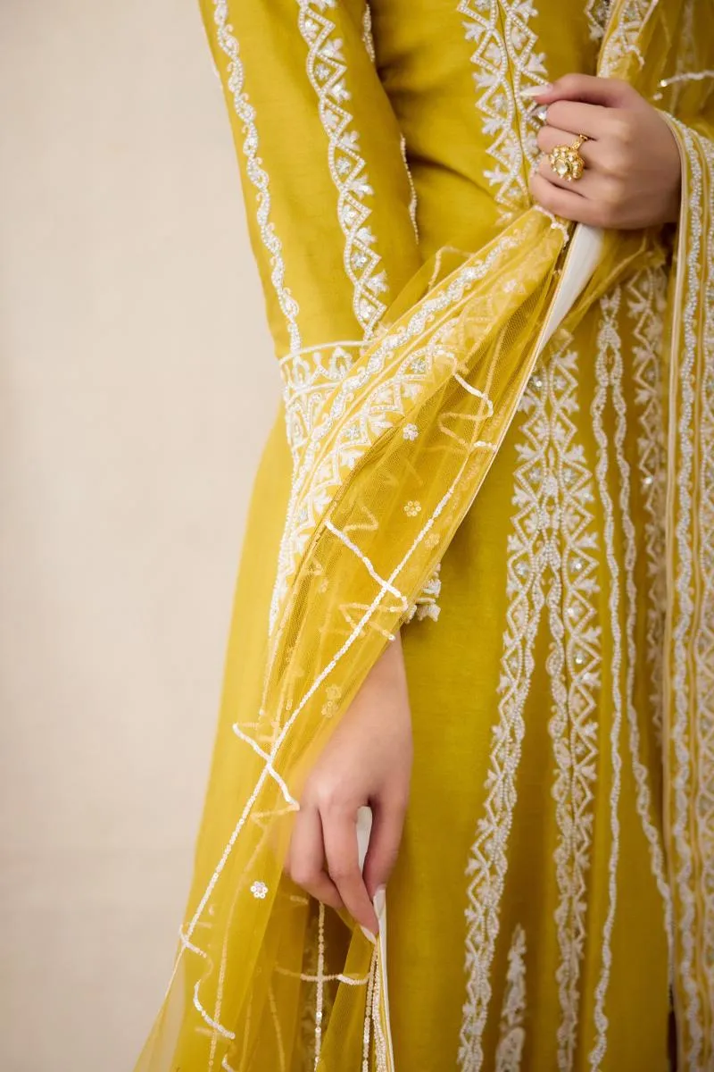 Professional dry-cleaning only. The garment should be kept in Soft Muslin fabric. Do not spray perfume directly on garment. Avoid mothball use. Kindly keep the garment in moderate climate as same of the embroidery material tends to react with the weather change.
