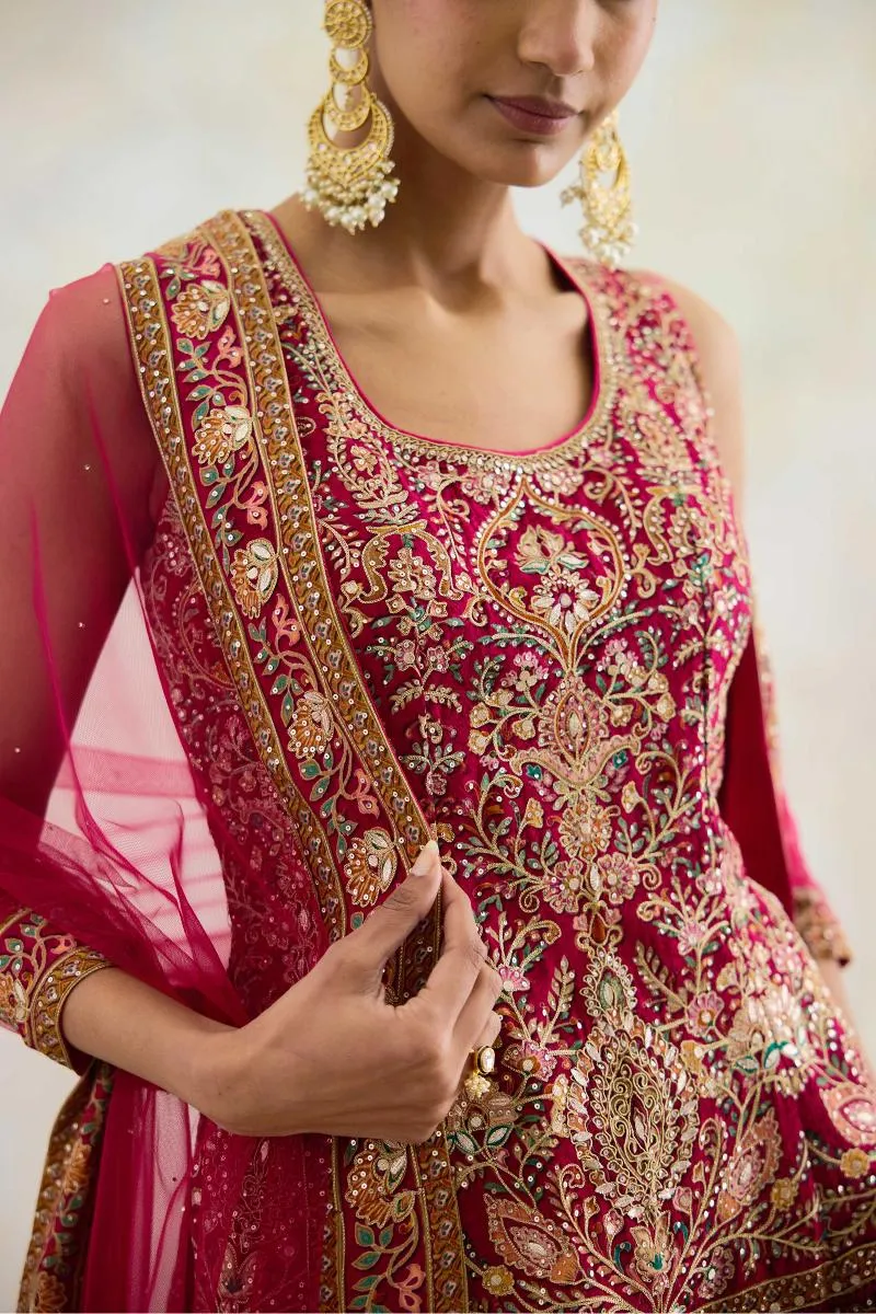 Professional dry-cleaning only. The garment should be kept in Soft Muslin fabric. Do not spray perfume directly on garment. Avoid mothball use. Kindly keep the garment in moderate climate as same of the embroidery material tends to react with the weather change.