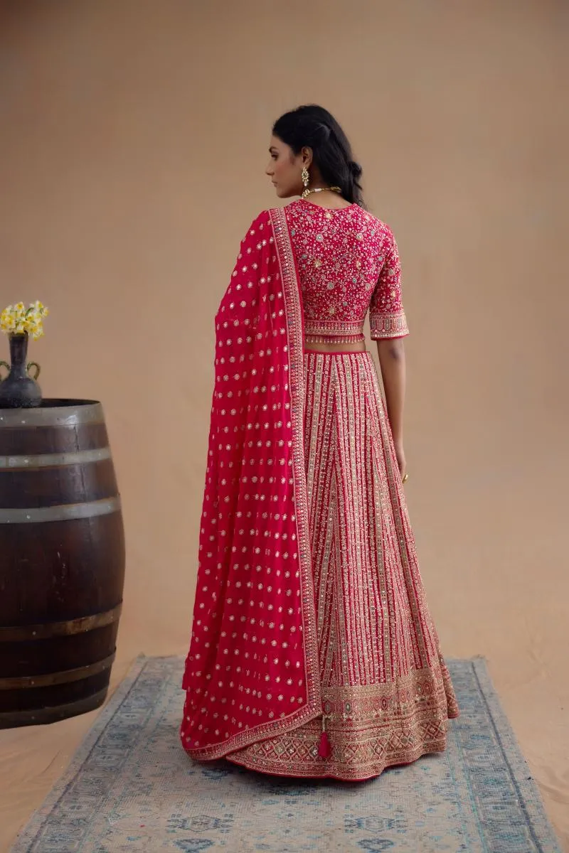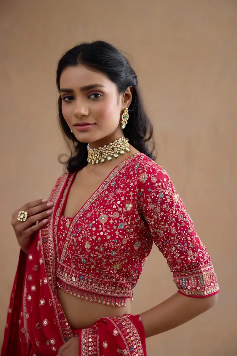 Professional dry-cleaning only. The garment should be kept in Soft Muslin fabric. Do not spray perfume directly on garment. Avoid mothball use. Kindly keep the garment in moderate climate as same of the embroidery material tends to react with the weather change.