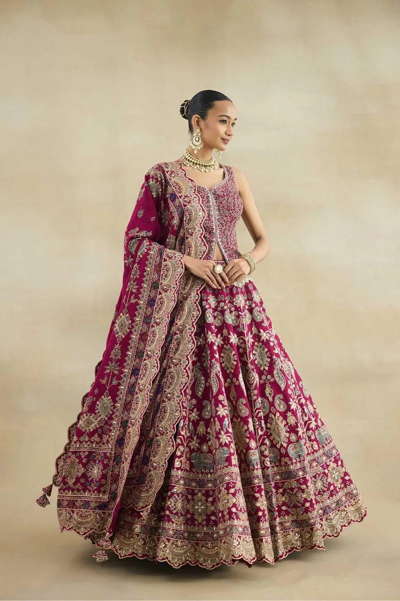Professional dry-cleaning only. The garment should be kept in Soft Muslin fabric. Do not spray perfume directly on garment. Avoid mothball use. Kindly keep the garment in moderate climate as same of the embroidery material tends to react with the weather change.