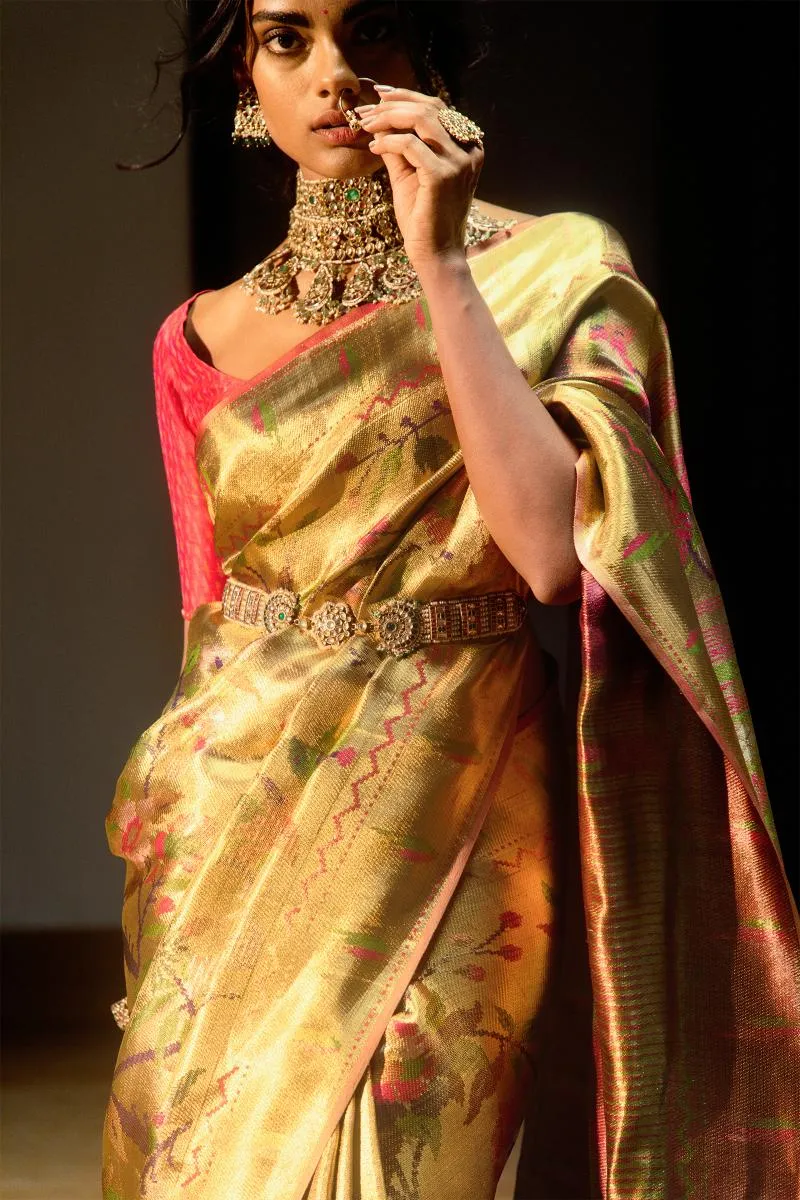 Professional dry-cleaning only. The garment should be kept in Soft Muslin fabric. Do not spray perfume directly on garment. Avoid mothball use. Kindly keep the garment in moderate climate as same of the embroidery material tends to react with the weather change.