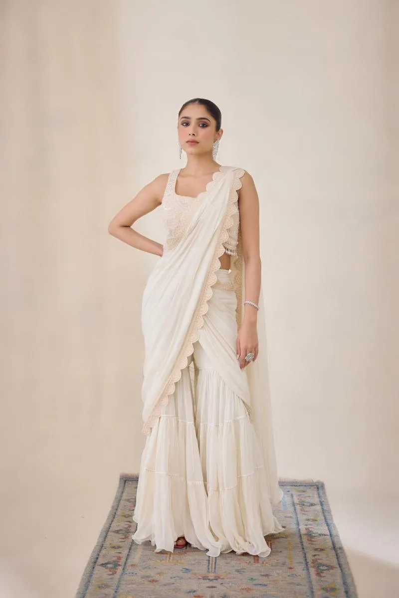 Professional dry-cleaning only. The garment should be kept in Soft Muslin fabric. Do not spray perfume directly on garment. Avoid mothball use. Kindly keep the garment in moderate climate as same of the embroidery material tends to react with the weather change.