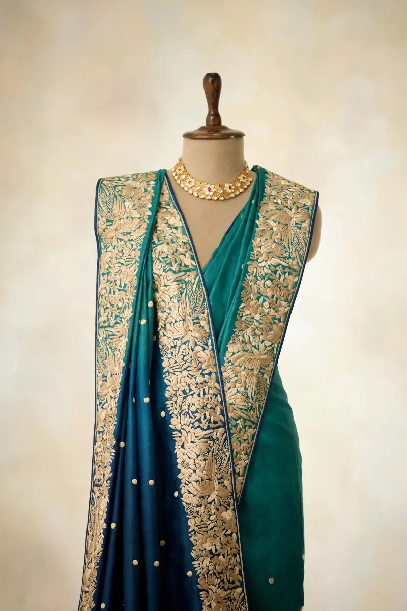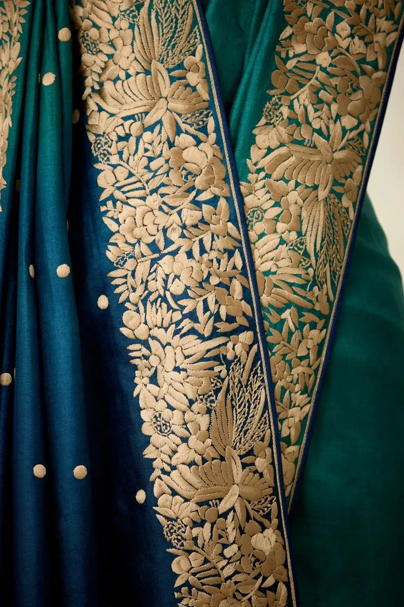 Professional dry-cleaning only. The garment should be kept in Soft Muslin fabric. Do not spray perfume directly on garment. Avoid mothball use. Kindly keep the garment in moderate climate as same of the embroidery material tends to react with the weather change.