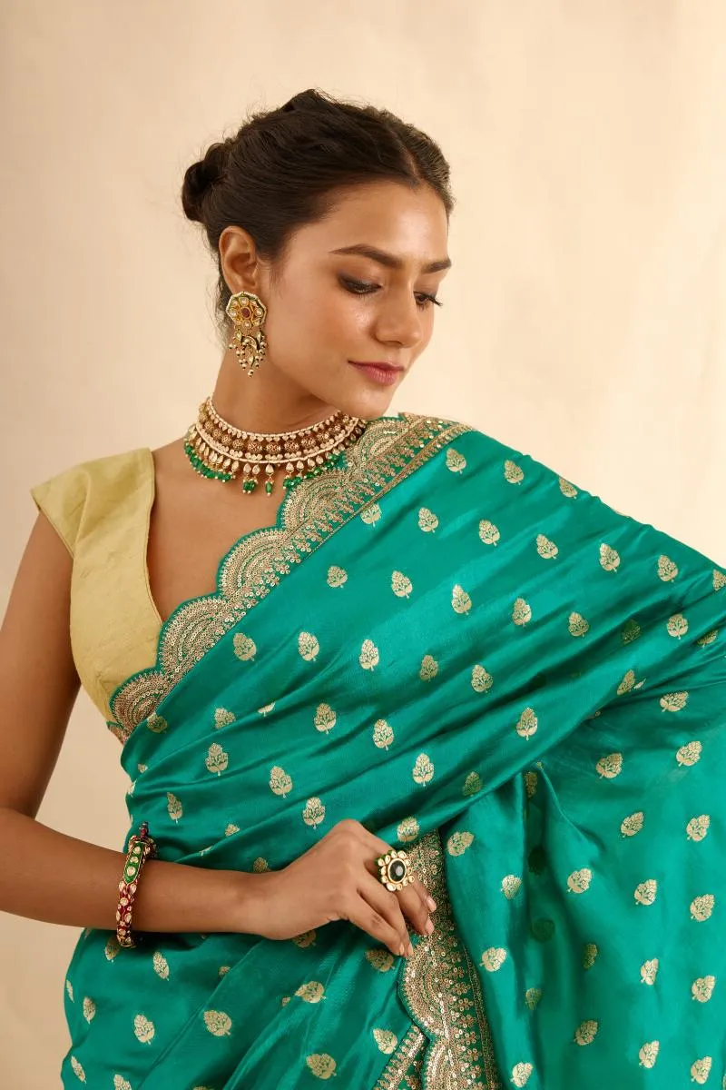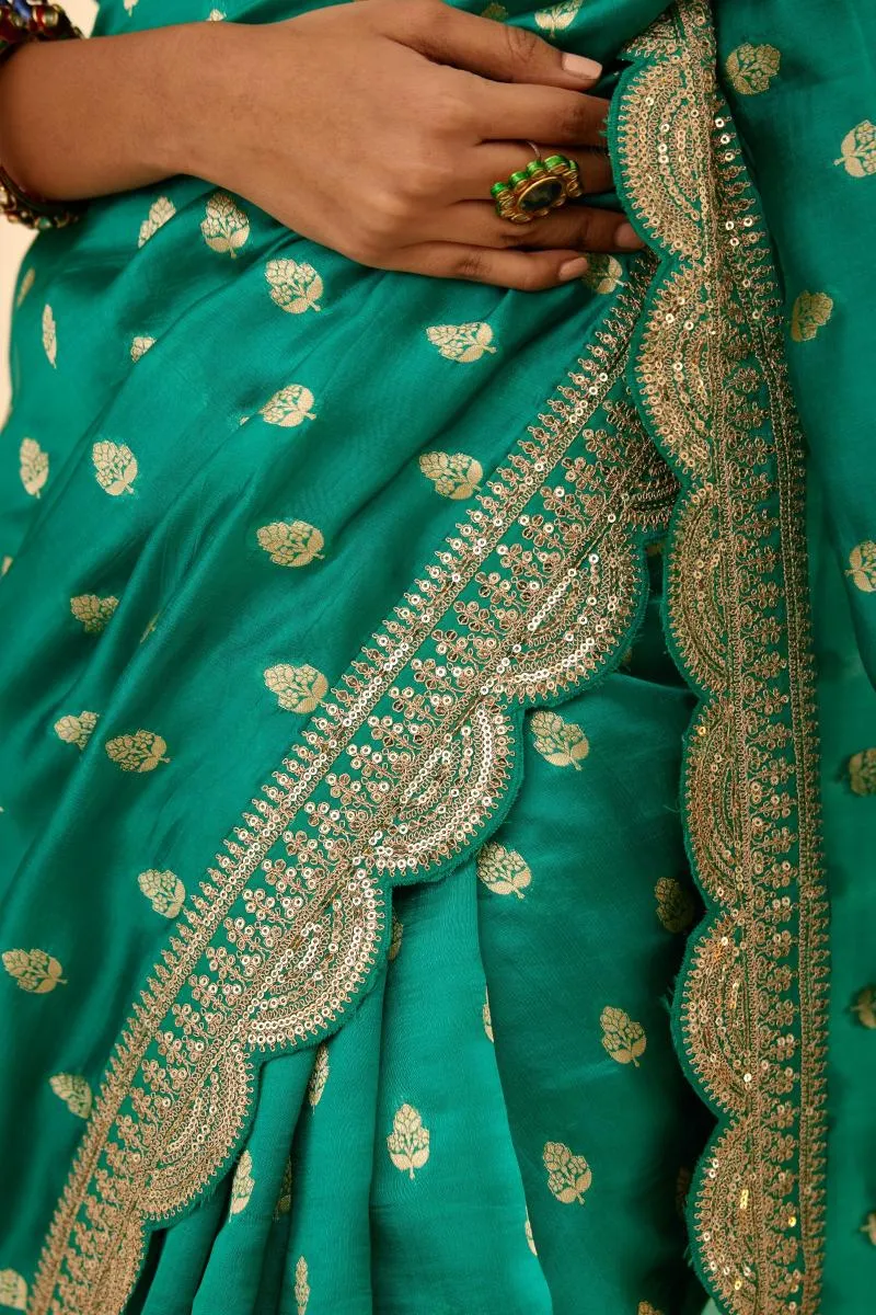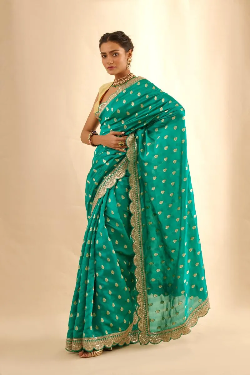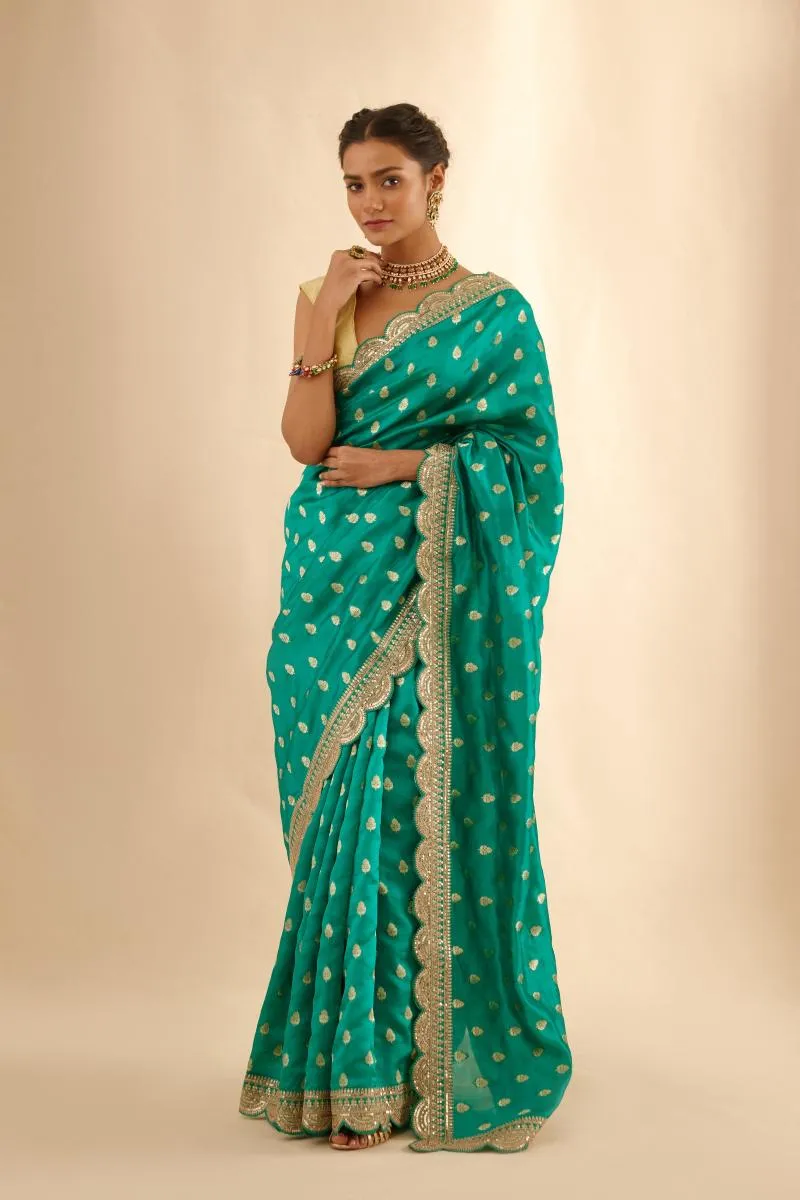 Professional dry cleaning only. The garment should be kept in Soft Muslin fabric. Do not spray perfume directly on garment. Avoid mothball use. Kindly keep the garment in moderate climate as same of the embroidery material tends to react with the weather change.