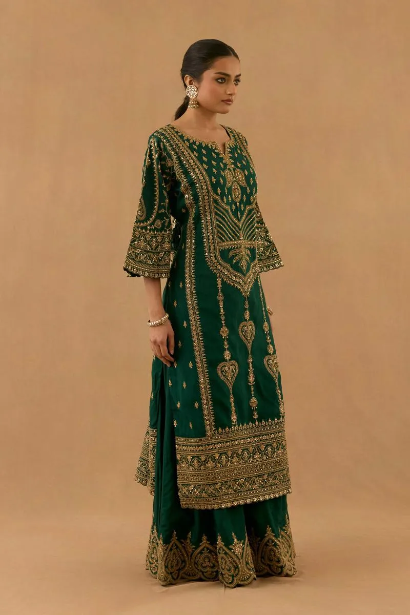 Emerald Green Silk Sharara Set