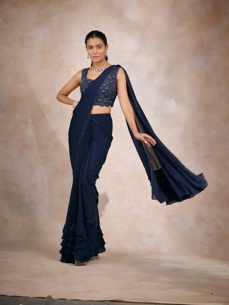 Professional dry cleaning only. The garment should be kept in Soft Muslin fabric. Do not spray perfume directly on garment. Avoid mothball use. Kindly keep the garment in moderate climate as same of the embroidery material tends to react with the weather change.