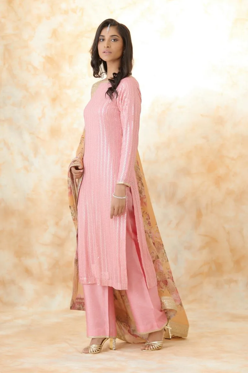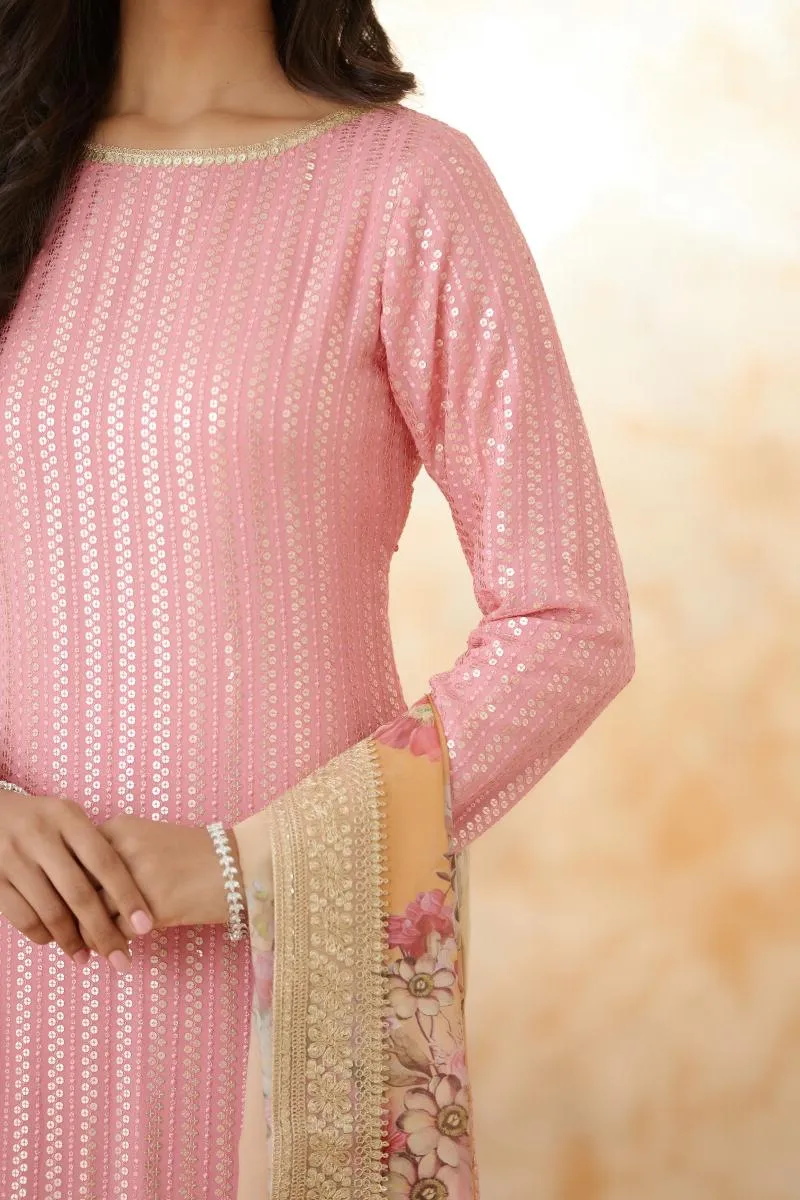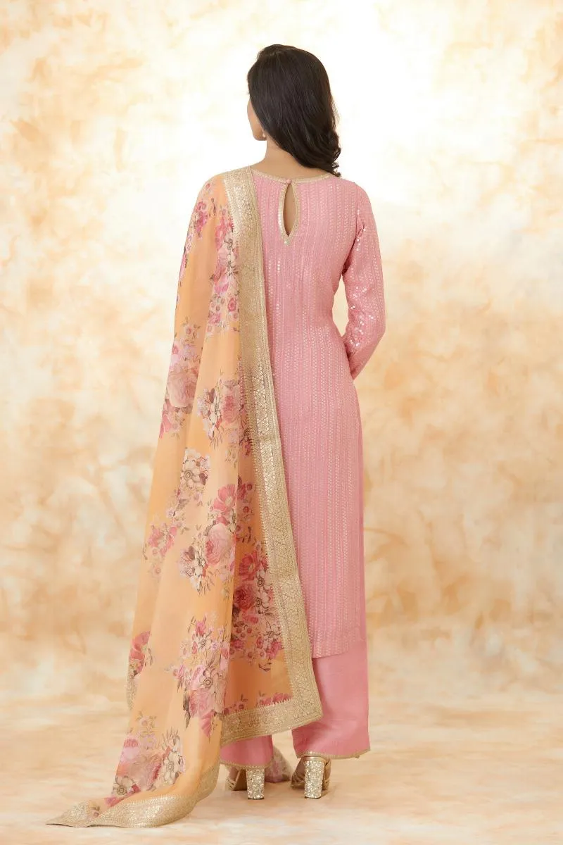 Work: sequence work on shirt printed organza dupatta with border with mask