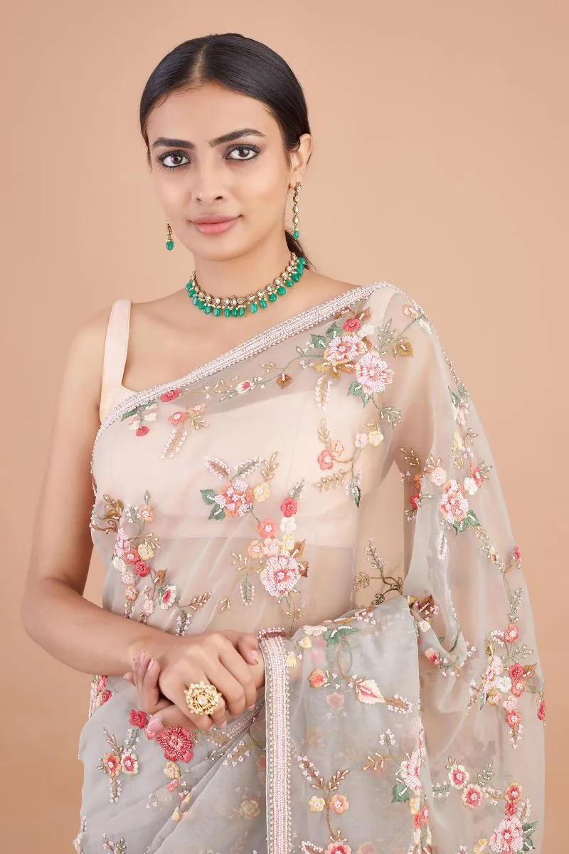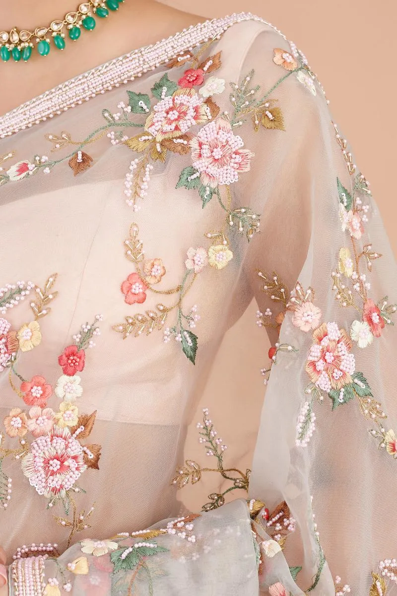 Professional dry cleanning only. Garment should be kept in Soft Muslin fabric. Do not spray perfume direictly on garment. Avoid moth ball use. Kindly keep the garment in moderate climate as same of the embroidery material tends to react with weather change.