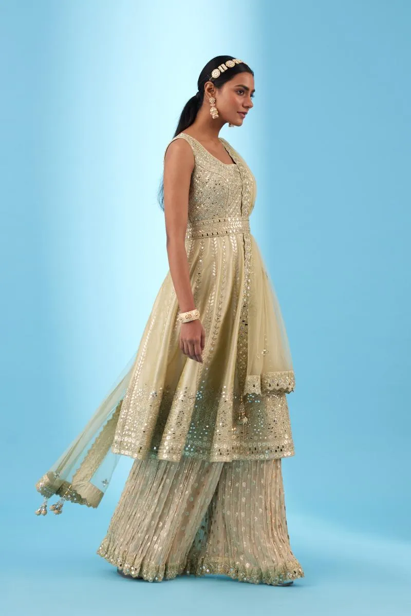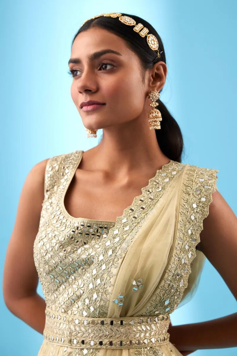 Professional dry cleaning only. The garment should be kept in Soft Muslin fabric. Do not spray perfume directly on garment. Avoid mothball use. Kindly keep the garment in moderate climate as same of the embroidery material tends to react with the weather change.