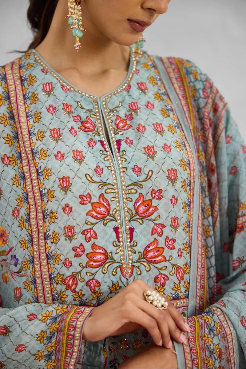 Professional dry-cleaning only. The garment should be kept in Soft Muslin fabric. Do not spray perfume directly on garment. Avoid mothball use. Kindly keep the garment in moderate climate as same of the embroidery material tends to react with the weather change.