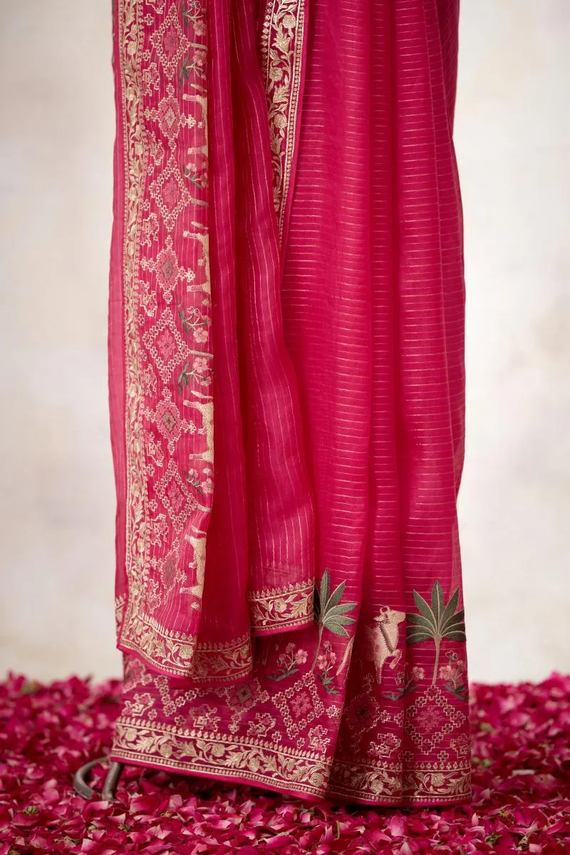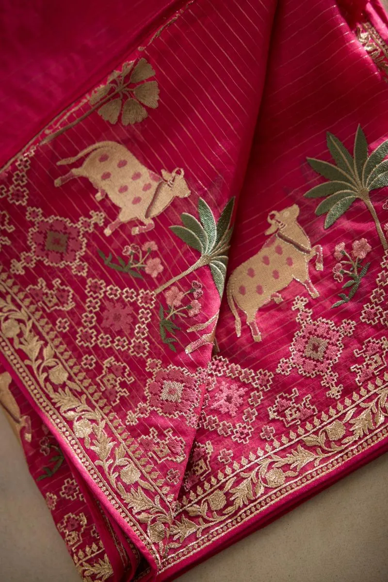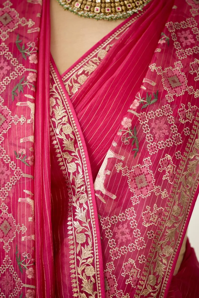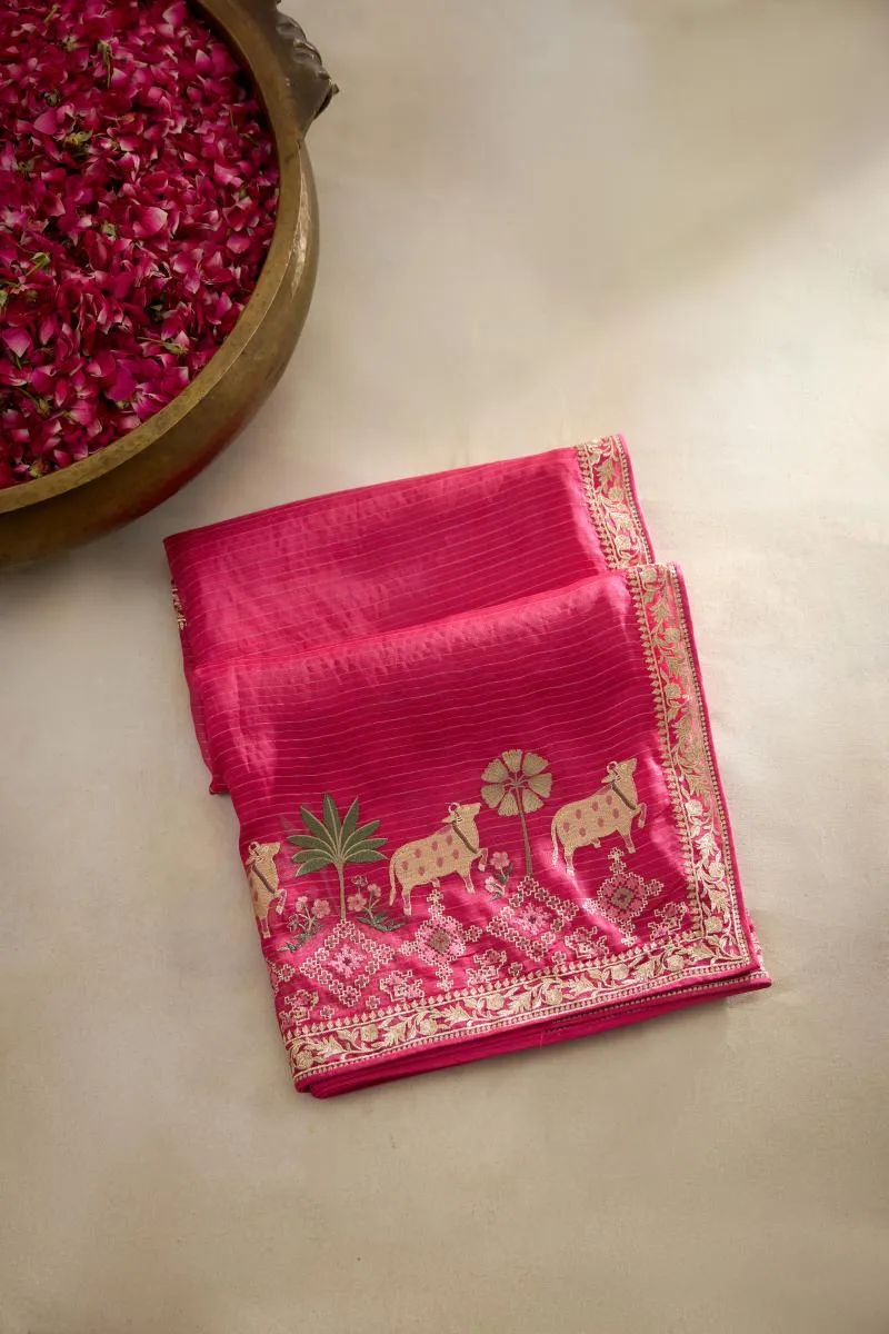 Professional dry-cleaning only. The garment should be kept in Soft Muslin fabric. Do not spray perfume directly on garment. Avoid mothball use. Kindly keep the garment in moderate climate as same of the embroidery material tends to react with the weather change.