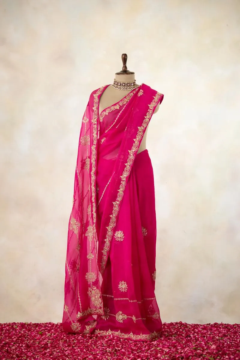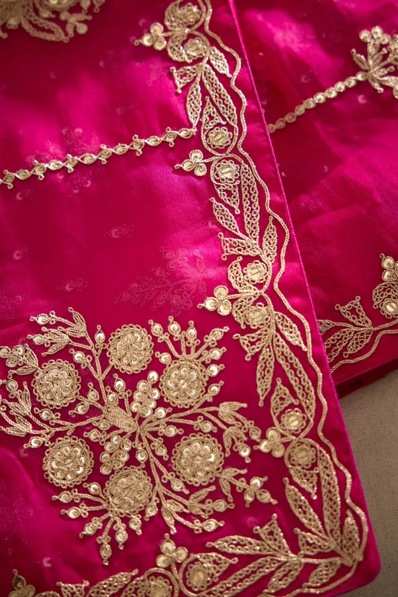 Professional dry-cleaning only. The garment should be kept in Soft Muslin fabric. Do not spray perfume directly on garment. Avoid mothball use. Kindly keep the garment in moderate climate as same of the embroidery material tends to react with the weather change.