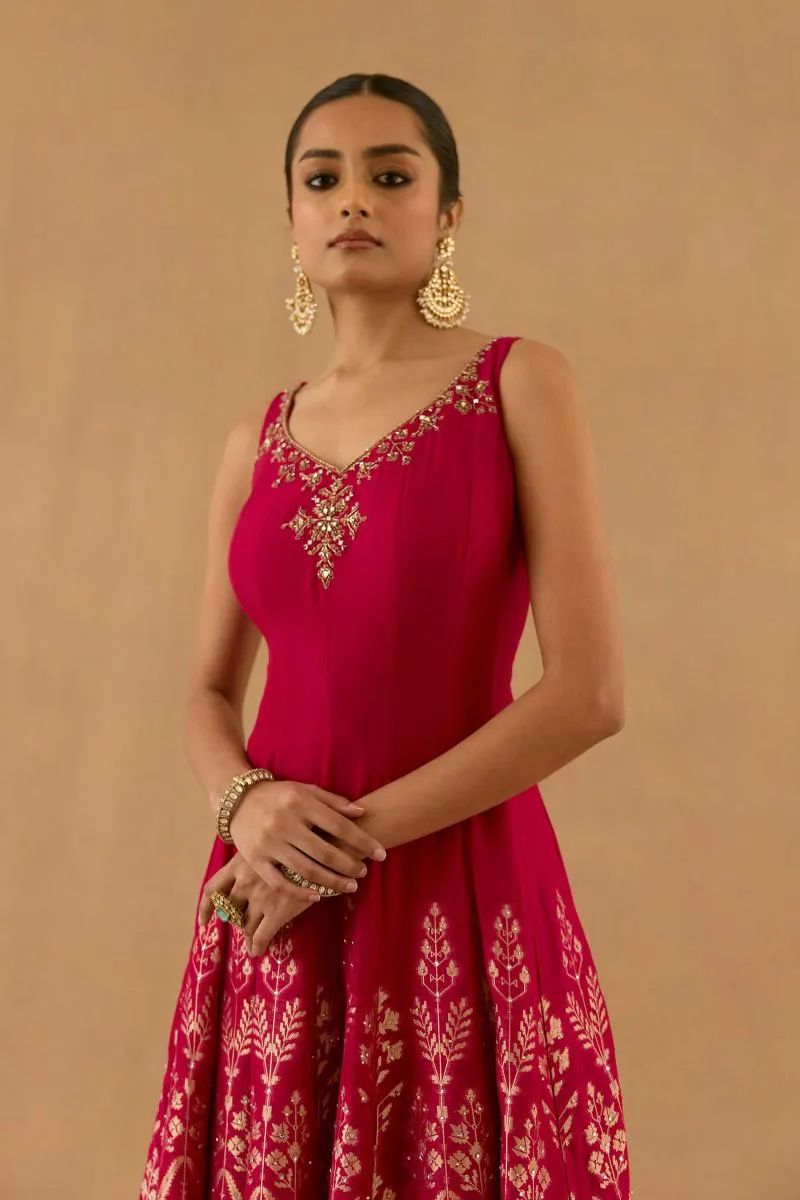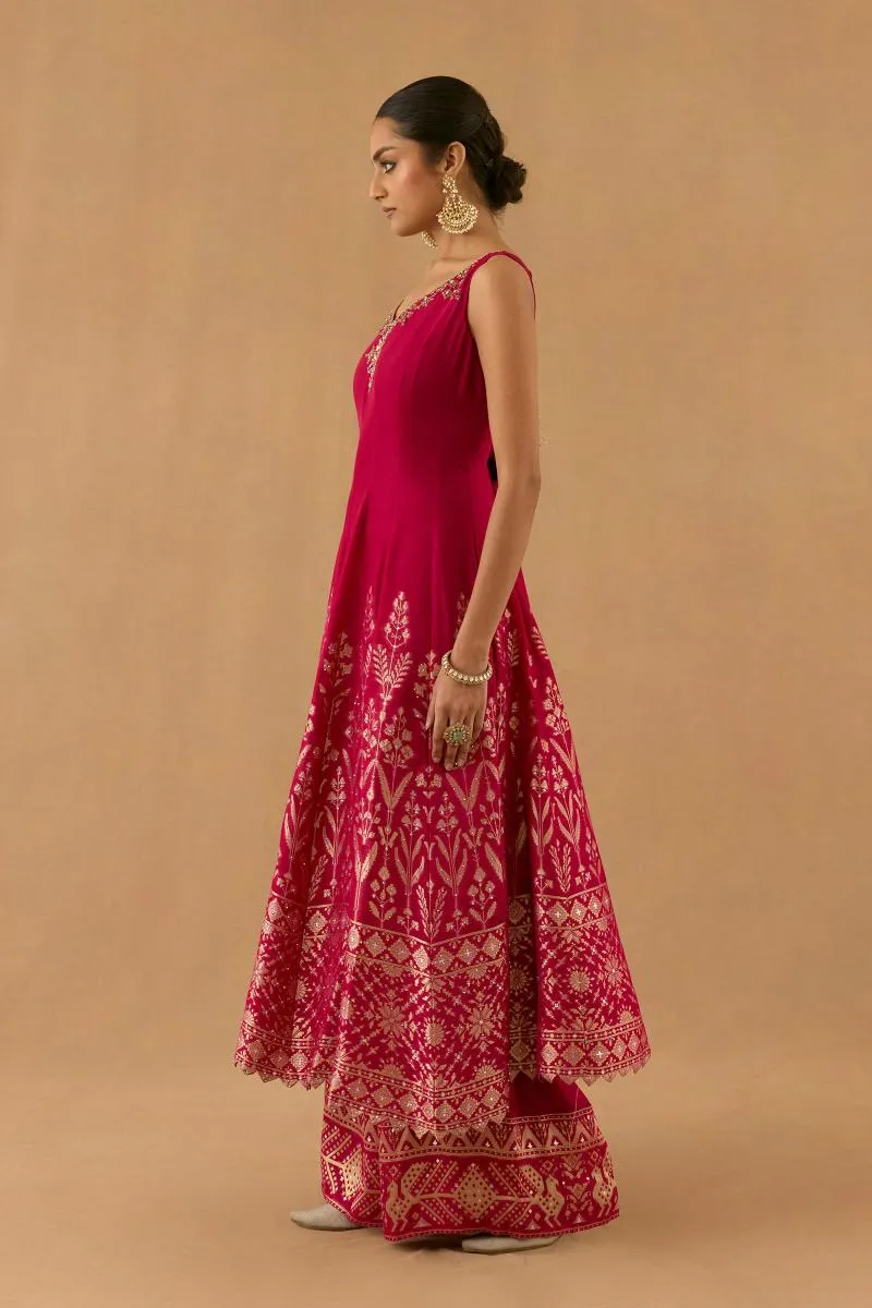 Professional dry-cleaning only. The garment should be kept in Soft Muslin fabric. Do not spray perfume directly on garment. Avoid mothball use. Kindly keep the garment in moderate climate as same of the embroidery material tends to react with the weather change.