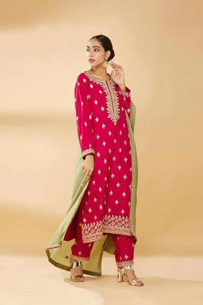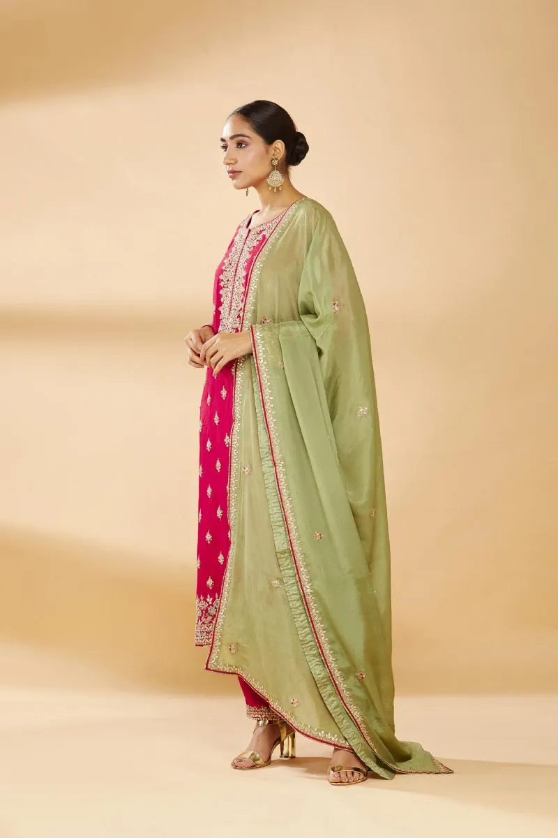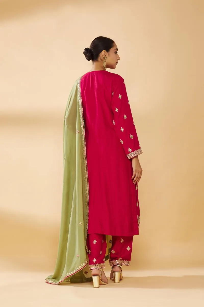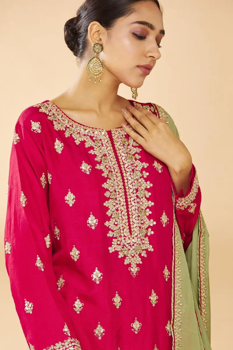 Work: Embellished with Gota, Dori, Dabka, Resham, Swarosvki, Sequence and Pearl work in Tradional border and Buties Allover