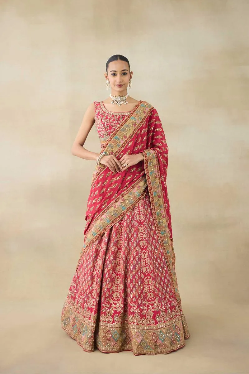 Deep Coral Lehenga Set