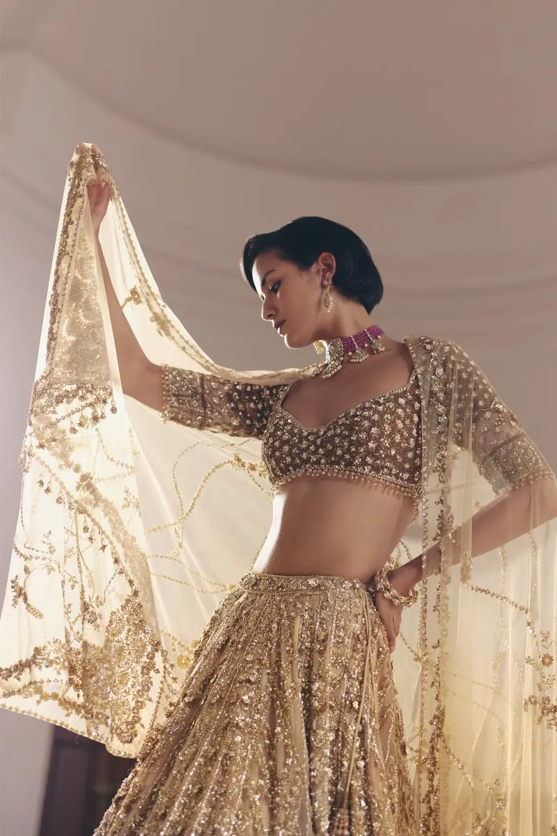 Professional dry-cleaning only. The garment should be kept in Soft Muslin fabric. Do not spray perfume directly on garment. Avoid mothball use. Kindly keep the garment in moderate climate as same of the embroidery material tends to react with the weather change.