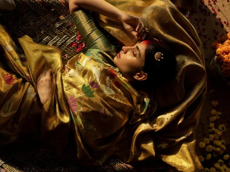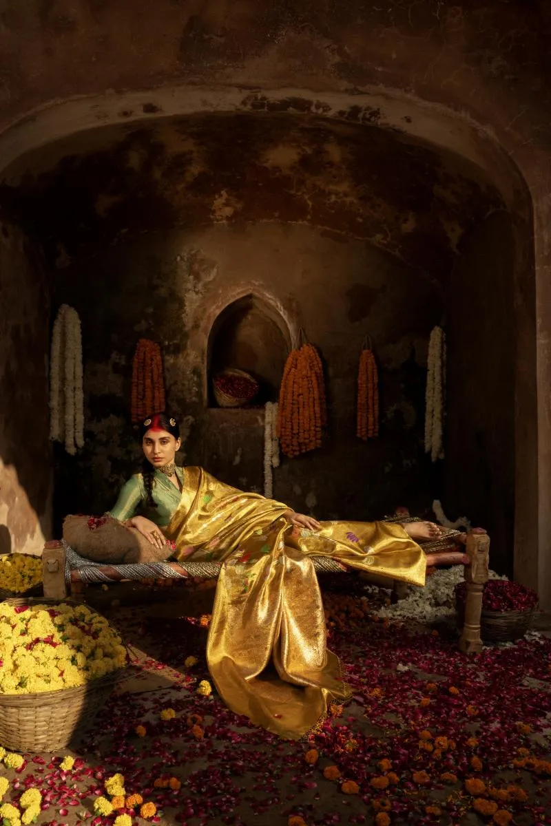 Professional dry-cleaning only. The garment should be kept in Soft Muslin fabric. Do not spray perfume directly on garment. Avoid mothball use. Kindly keep the garment in moderate climate as same of the embroidery material tends to react with the weather change.